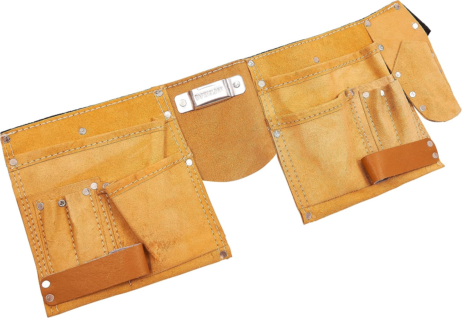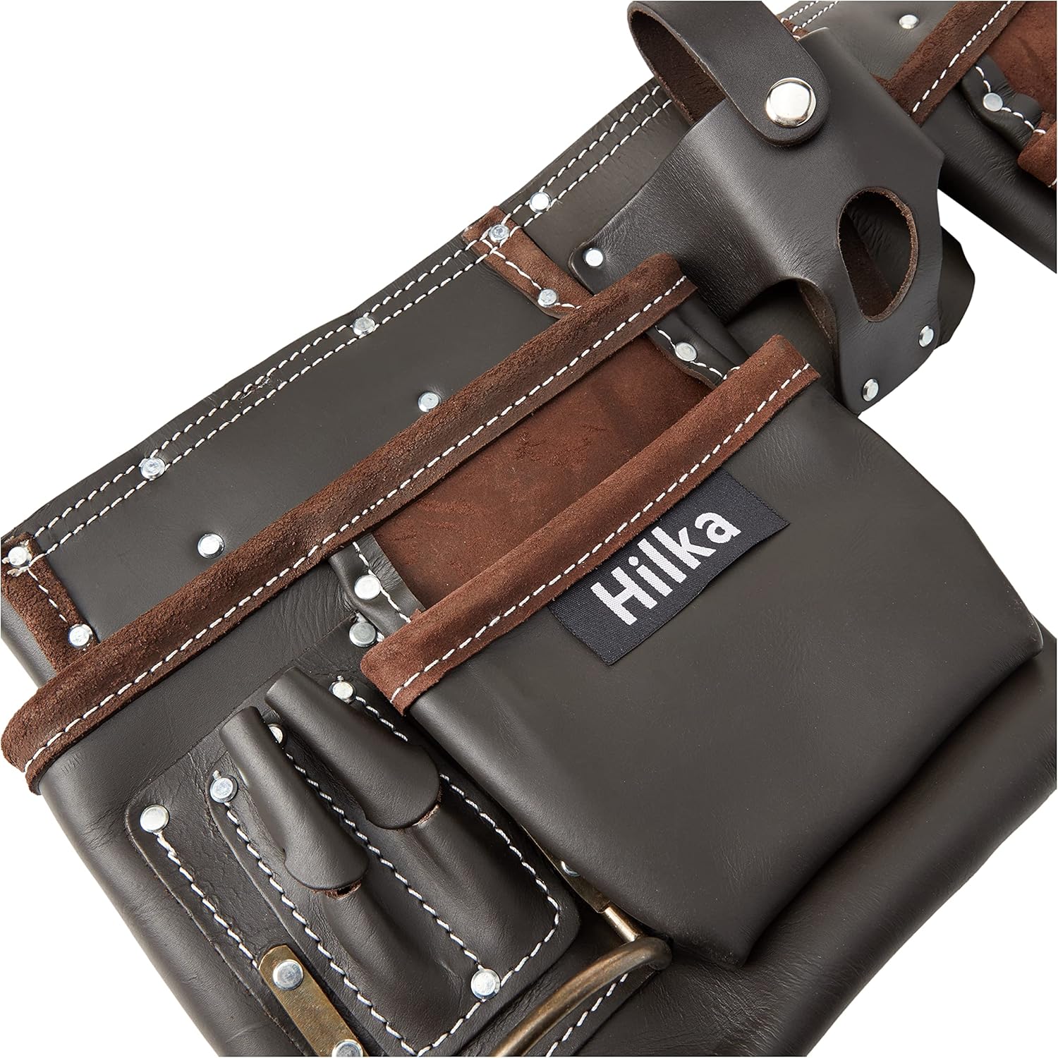 10 Pocket Tool Belt The Hilka 77705002 10 Pocket Professional Leather Tool Belt is an a highly versatile tool storage belt that is capable of holding multiple tools and fixings. Fits 32" waist and above Images shown for illustration purposes only.