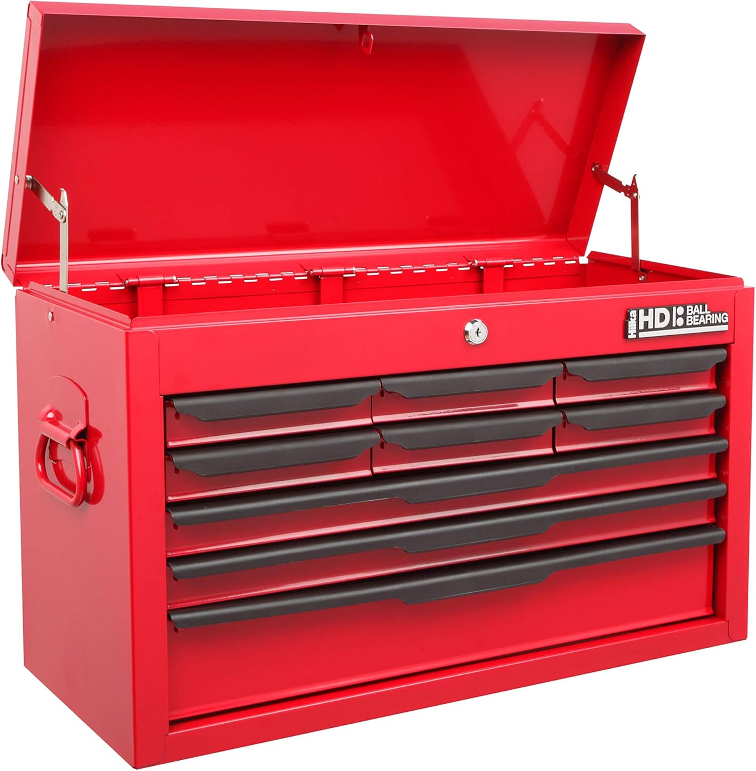 Heavy Duty 9 Drawer Tool Chest BBS, all steel construction with ball bearing slide. Key locking facility with full length drawer pulls and durable paint finish. Pro Craft branded with colour labels for retail display, dimensions: width 598, depth 389 and height 255 cm.