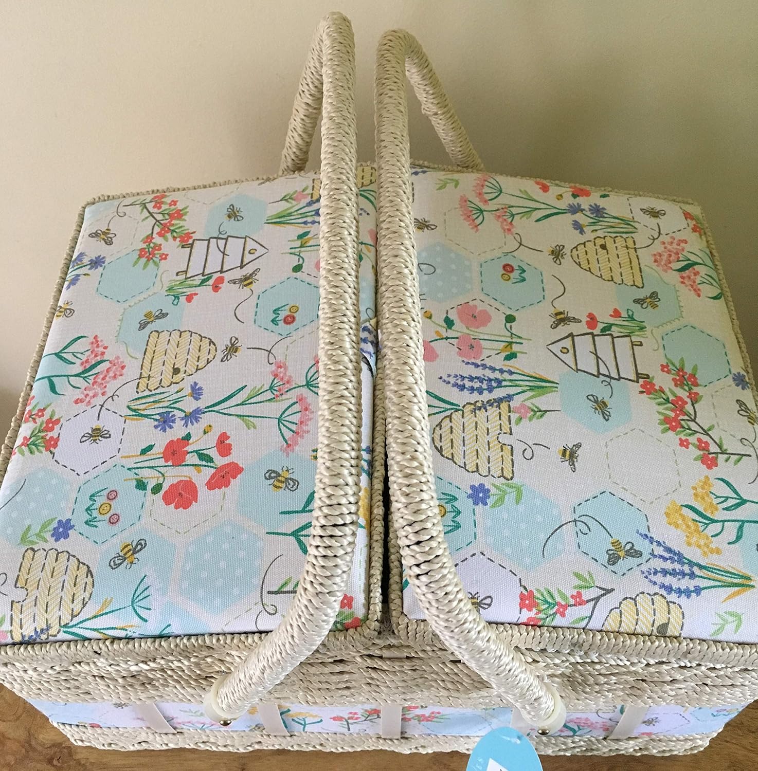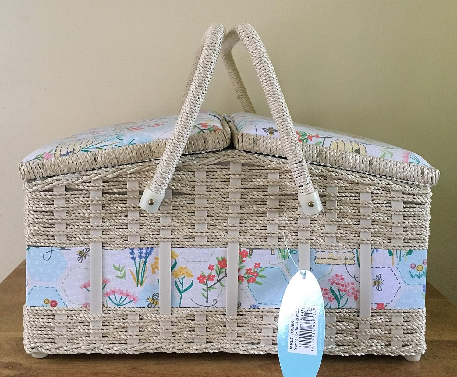 Hobby Gift Double Lid Sewing Box Sewing Bee Design – Box Size: (D/W/H): 26 x 35 x 20cm