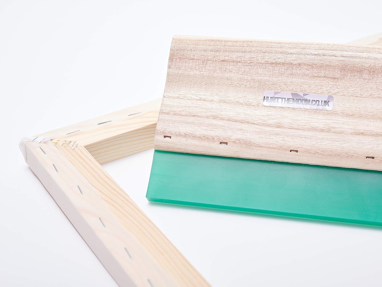 Each kit is hand-made and assembled on Dartmoor by people who understand both the art and the science of screen printing. Choose from Standard or Deluxe, with either 2 or 6 100ml Water Based Inks. Approximate Internal Dimensions A4: 345mm x 245mm (to fit A4 Paper – Size – 297 x 210mm) Standard kit contents: A4 frame with High-tension 43T mesh. 1x 8″ value wooden squeegee, fitted with a 75 shore blade. 2x 100ml pots of ink, one black and one white. Deluxe kit contents: A4 frame with High-tension 43T mesh. 1x 8″ value wooden squeegee, fitted with a 75 shore blade. 6x 100ml pots of ink, one each of black, white, red, yellow, green and blue.