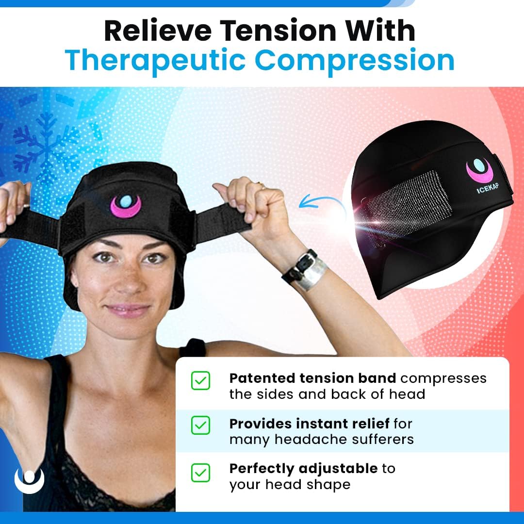• RELIEF, AT LAST: Imagine finally leaving the house to do the things you love — without the burden of migraines, tension, or cluster headaches. That’s the case for thousands of people who have discovered the original IceKap. And while it’s not a miracle, it IS the patented therapeutic, drug-free headache relief the world loves.