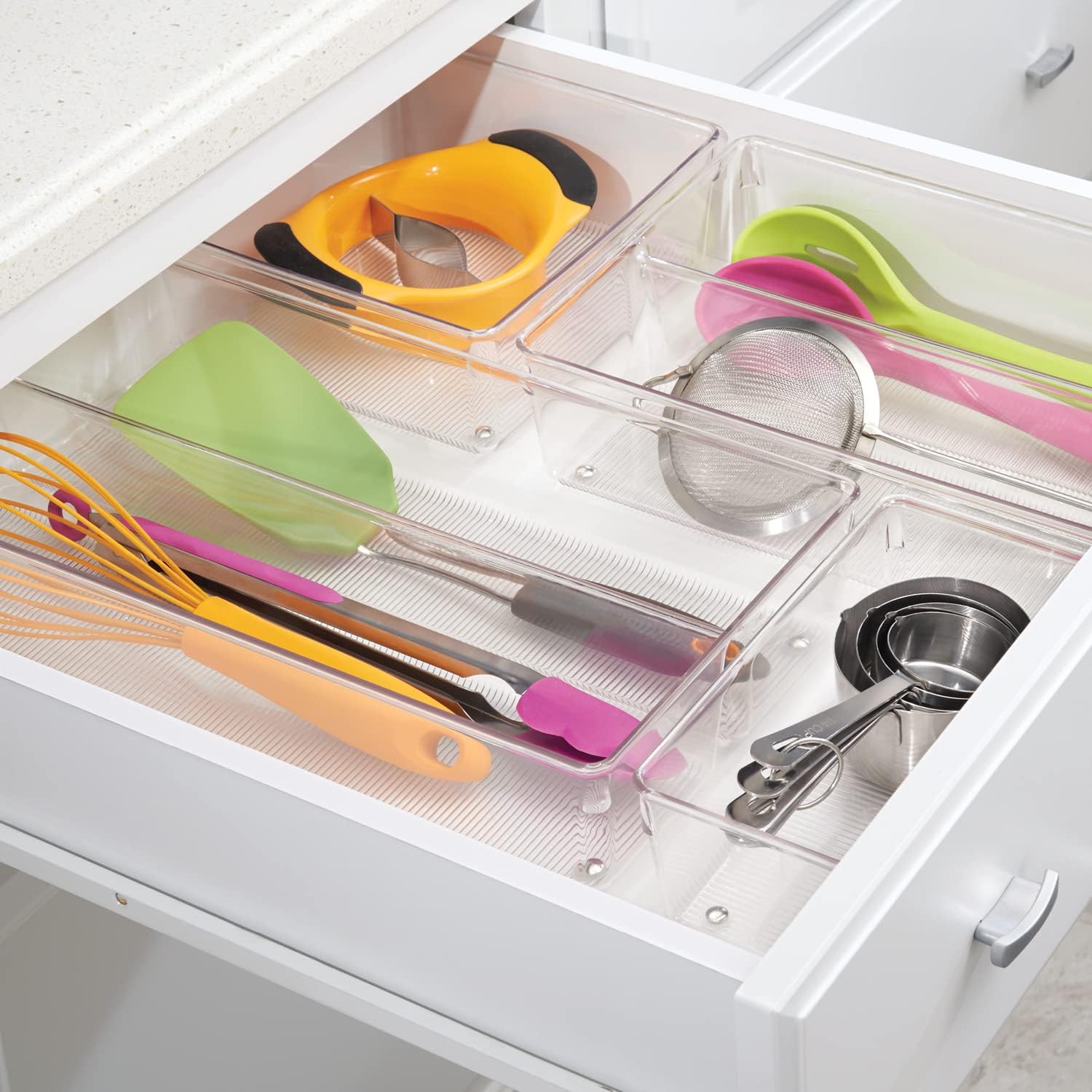 iDesign Linus Twin Kitchen Drawer Organizer for Silverware, Spatulas, Gadgets – 8″ x 16″ x 3″, Clear