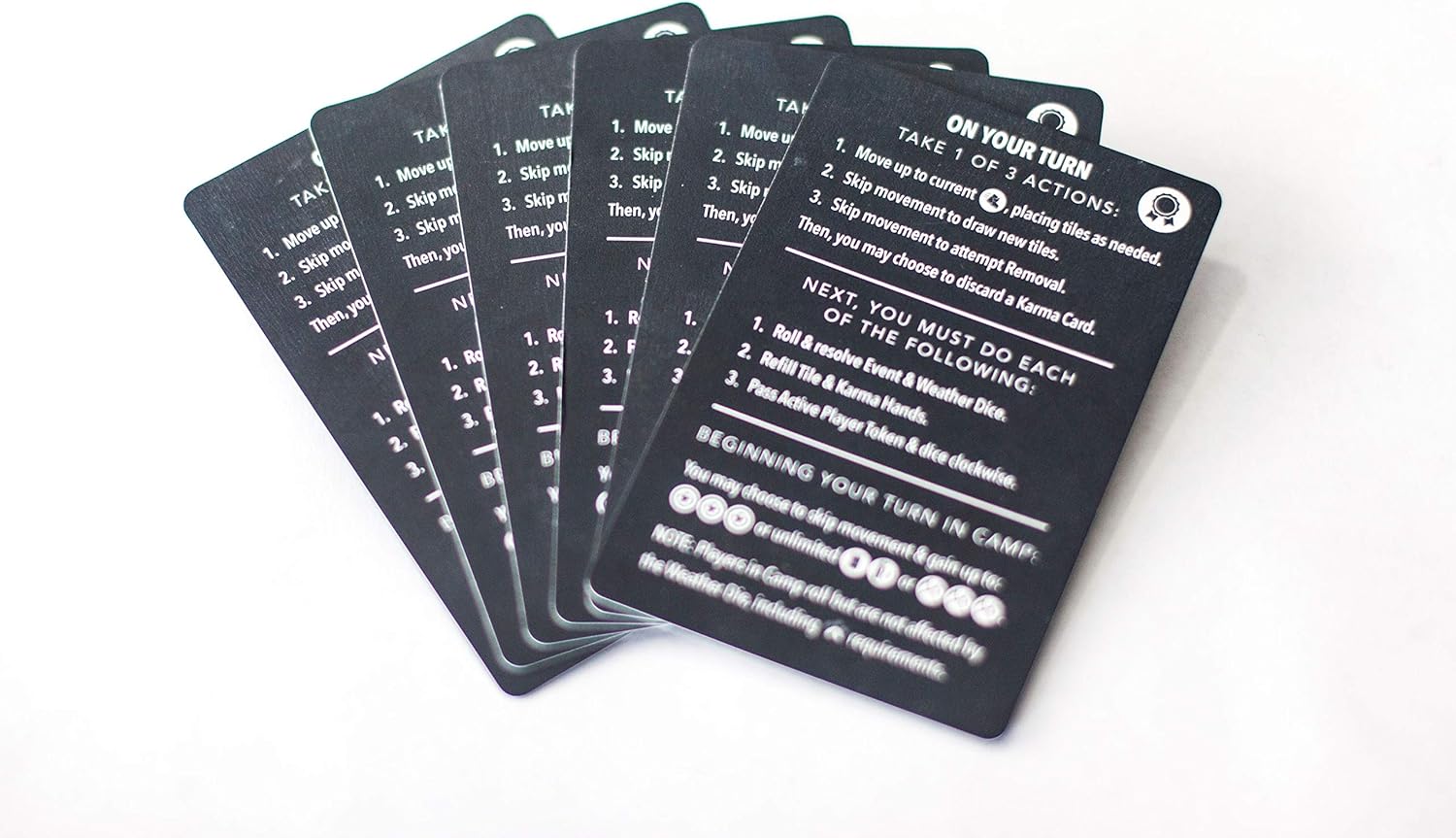 IN A COOPERATIVE OR SOLO GAME, players must work together to overcome the mountain and survive the expedition. Summit is a game so gruelling you only need one team member to survive the ascent and descent, so players may sacrifice themselves for the good of the team. Mechanics are changed as a “Sherpa Track” and a “Time of Day Track” are added, as well as a whole new stack of event cards. It is unlikely everyone will be returning from this expedition. |