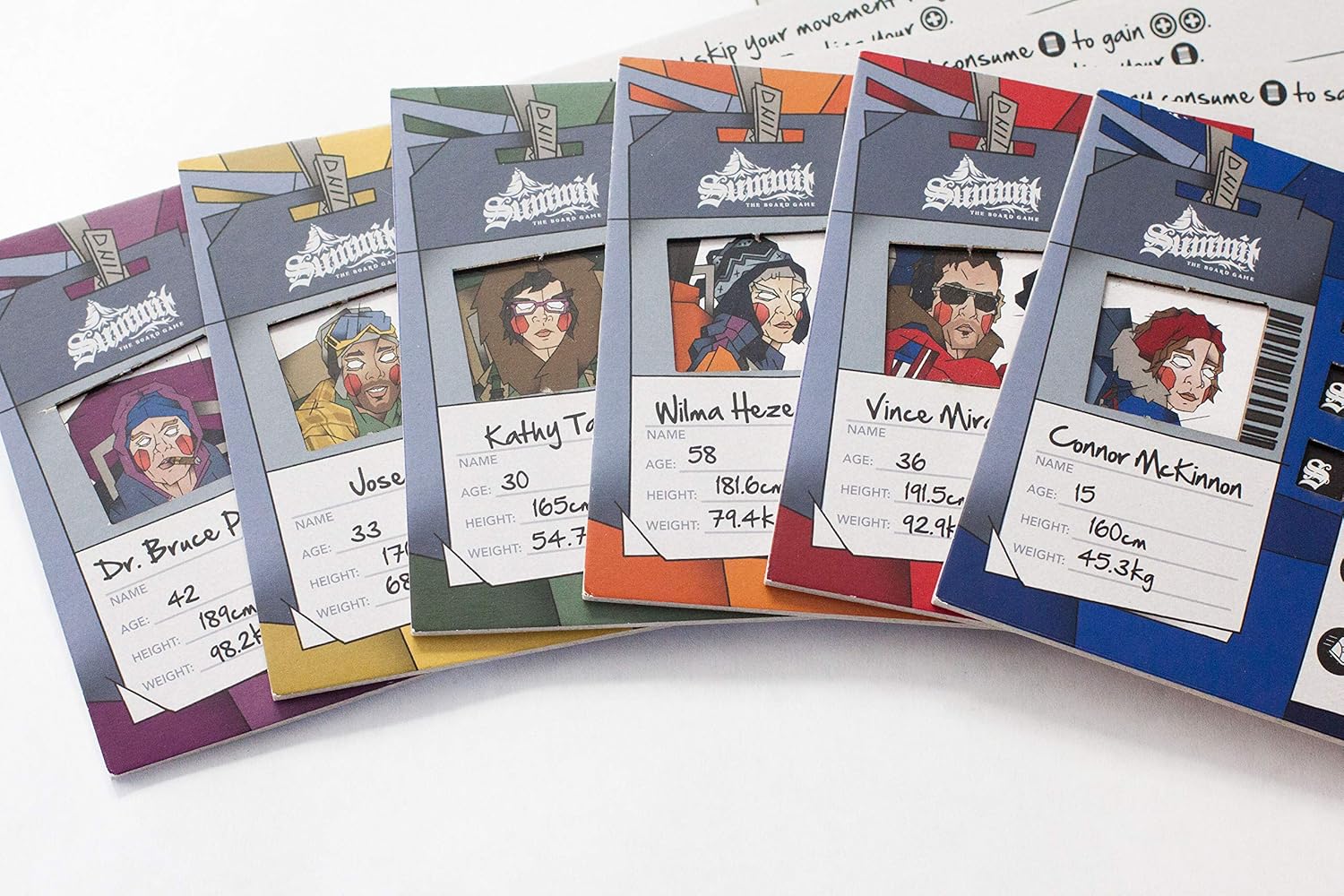 IN A COMPETITIVE GAME, players race up and down the deadly mountain while managing their resources, building their path, overcoming obstacles and attempting to survive their competition. Summituses a unique Karma System which allows players to actively help or hinder their opponents – but it also affects end game scoring. For a few extra points you could share some of your valuable food or oxygen, or maybe you can afford to lose some points so you choose to cut their rope and watch them disappear down the mountain. |
