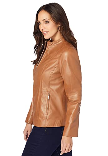 Jessica London Women’s Plus Size Zip Front Leather Jacket – 12 W, Black