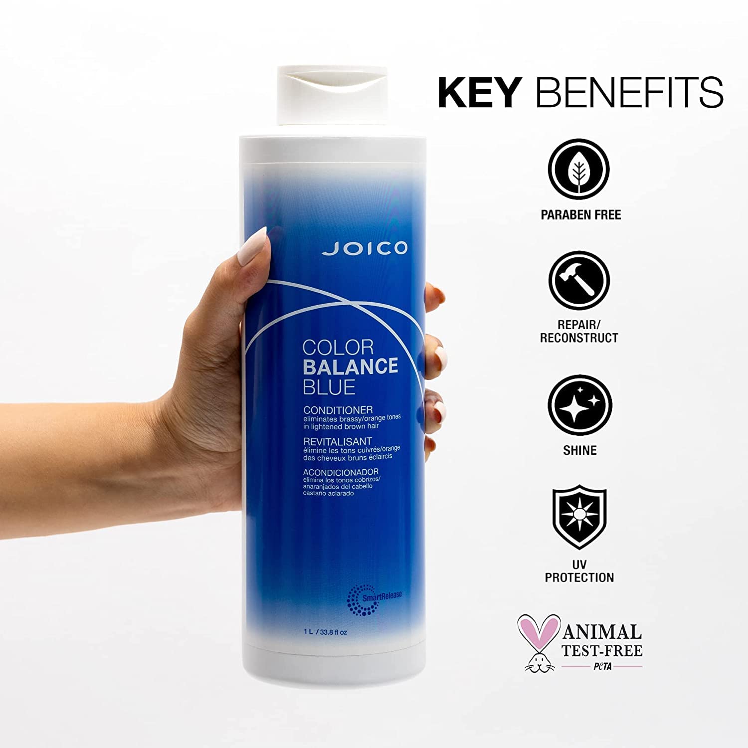 Joico Color Balance Blue Shampoo & Conditioner Set | Eliminate Brassy and Orange Tones | For Lightened Brown Hair