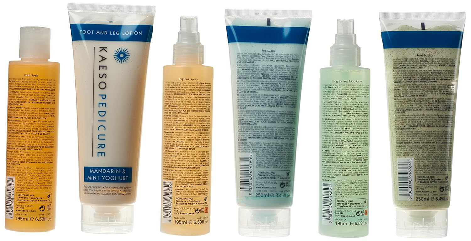 Kaeso Pedicure Kit ? 1 x Citrus Squeeze, Foot Soak 195ml ? 1 x Mandarin Spritz, Hygiene Spray 195ml ? 1 x Tee Tree & Ginger Breeze, Invigorating Foot Spray, 195ml ? 1 x Lime & Ginger Tingle, Foot Scrub 250ml ? 1 x Peppermint & Blueberry Twist, Foot Mask 250ml ? 1 x Mandarin & Mint Foot Yoghurt, Foot & Leg Lotion 250ml Contains No Parabens, Sulphates, Propylene Glycol or Mineral Oil The Kaeso ethos is to embody naturally derived ingredients with essential treatment formulas to deliver effective and luxurious professional products. Kaeso?s unique formulations are made with the finest, natural ingredients to assure the highest quality skincare. Natural ingredients are a fundamental part of the formulas and have been from the start. The formulation team at Kaeso source proven and effective botanical extracts and are committed to choosing ingredients that are renowned for their true benefits to the skin. Each product has been carefully designed to meet with Kaeso?s Innocence Criteria. To meet this criteria all products must be free from Parabens, Sulphates, Propylene Glycol and Mineral Oil and then they are proudly stamped with the Kaeso Leaf of Approval. Kaeso originated through a desire to create an effective beauty experience, with solutions for all skincare needs. The Kaeso collection meets all beauty treatment requirements, covering Beauty, Body, Manicure, Pedicure and Aromatherapy. Backed by extensive research and innovation the development and expansion of Kaeso is carried out by industry experts that are highly trained within the beauty sector. Kaeso offers an array of specialised treatments to address the individual preferences and skin?s changing needs. Within the extensive Kaeso collection, there is a fusion of natural products that maintain and restore your body, mind and wellbeing and allow you to create a simple and personalised regime to achieve great results.
