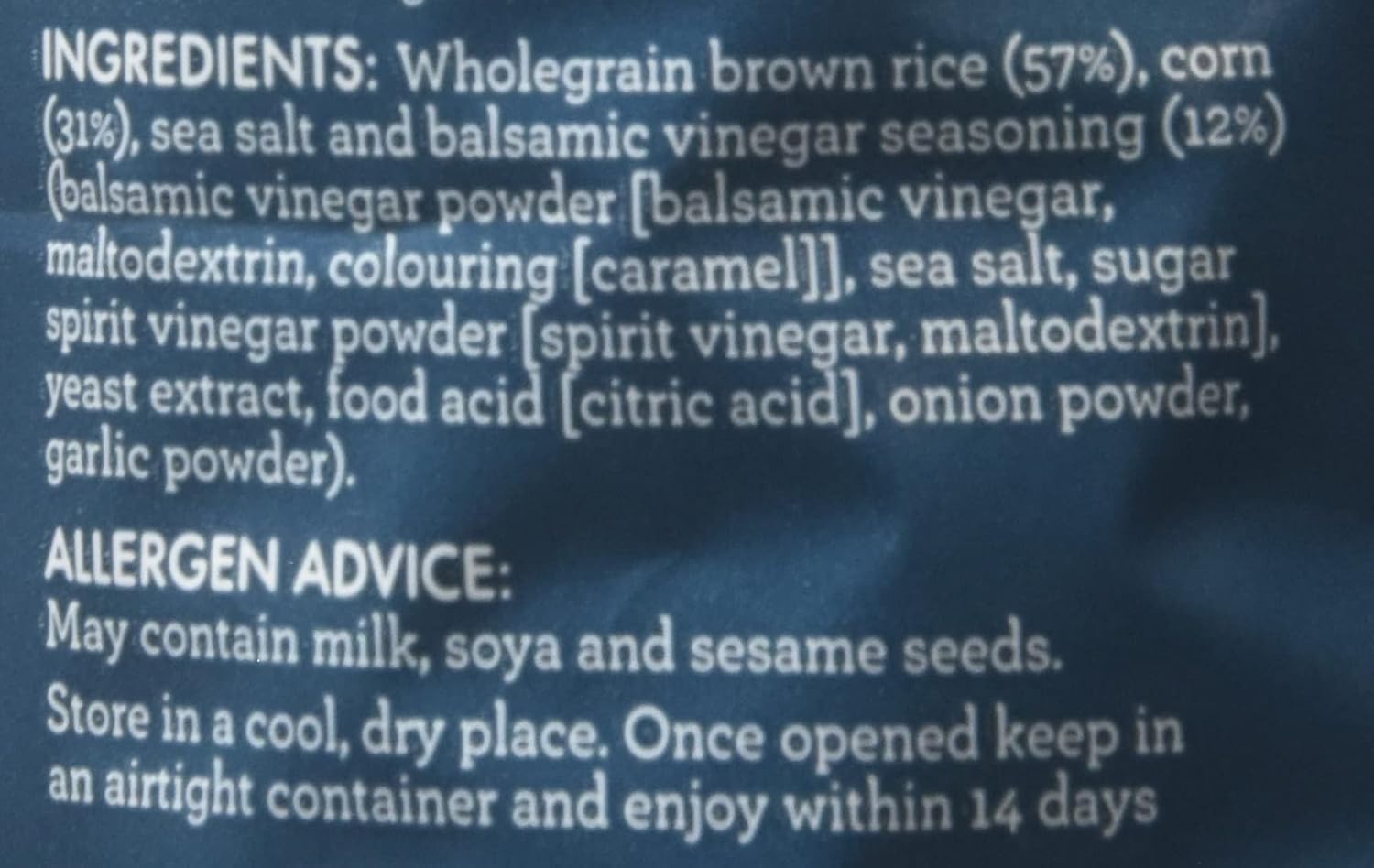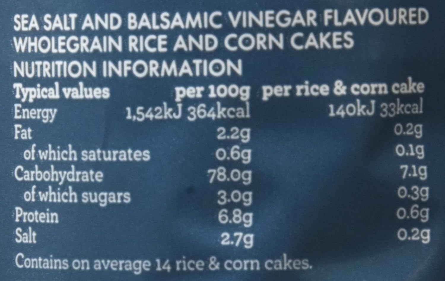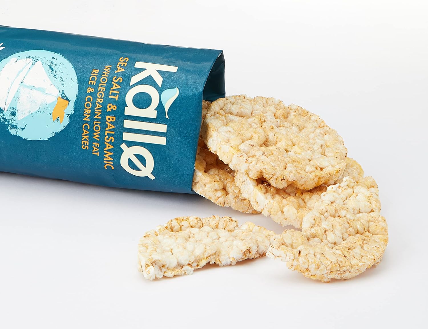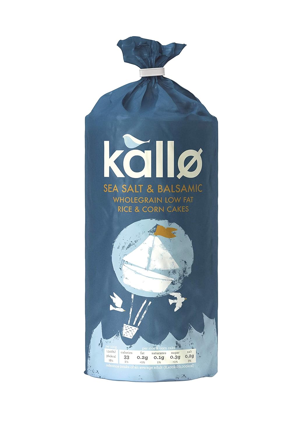 Made using 100 percent natural ingredients 100 percent wholegrain less than 3 percent fat 33 calories per cake no artificial colours, flavours or preservatives, vegetarian society approved sea salt and balsamic vinegar flavoured wholegrain rice cakes sea salt and balsamic vinegar rice cakes our snacks are naturally irresistible. We make our rice cakes with 100 percent natural ingredients to bring out the fullest flavour, like this classic combination of balsamic vinegar and sea salt. Each rice cake makes a tasty, filling snack which you can enjoy on its own or layered up with deliciously inspired toppings. Thought for food. You’ll never find anything artificial in our Kallo rice cakes because we think good food and drink should always come naturally. For over 20 years we have been creating our deliciously simple, wholesome recipes from the finest natural ingredients, making food and drink with the utmost thought for your wellbeing and enjoyment.