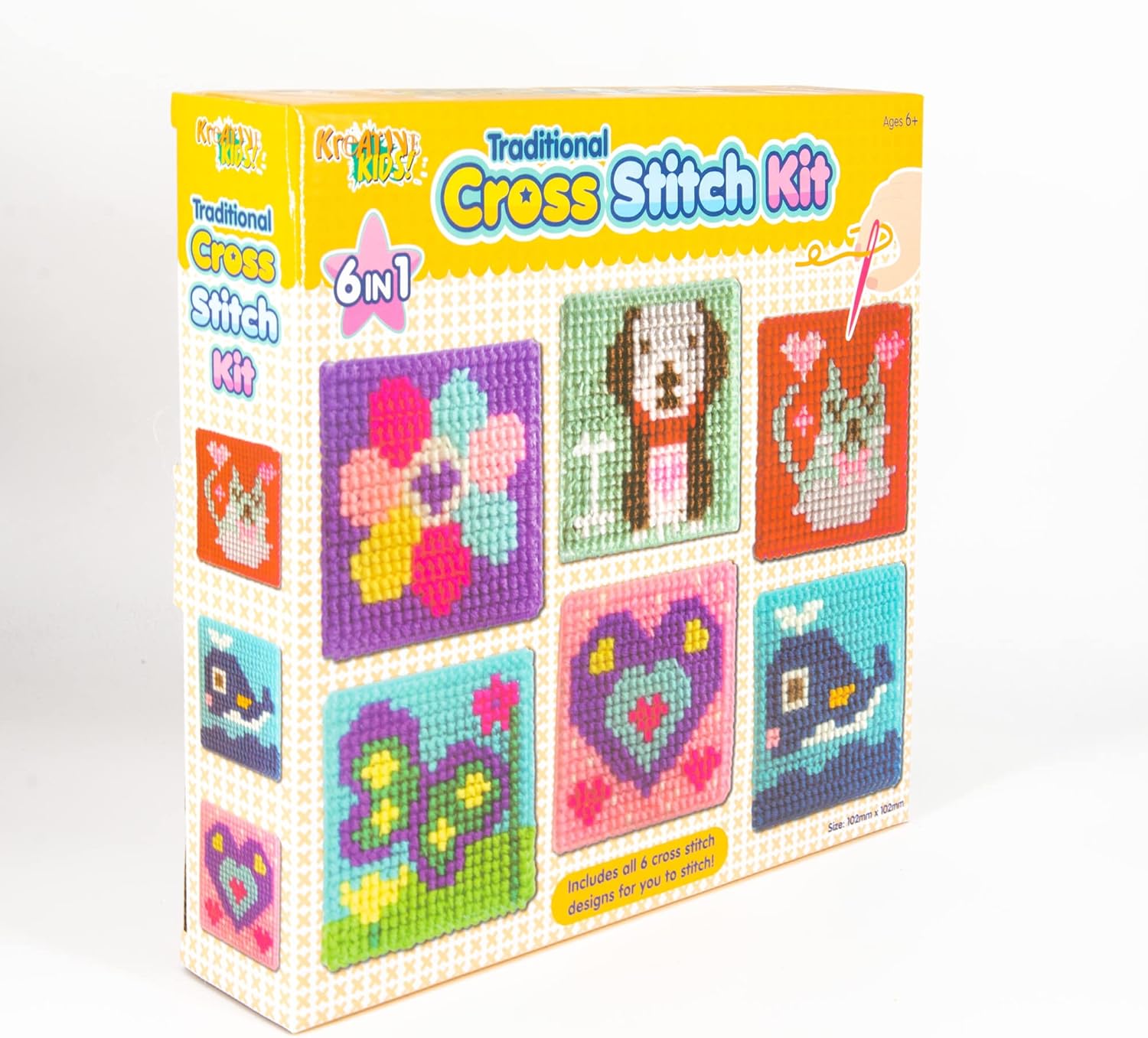 Kids traditional cross stitch craft kit An excellent way to introduce children to the exciting world of arts and crafts Give cross stitching a try with these easy to follow patterns and learn some needle craft skills Fantastic to use as extra special card decorations!