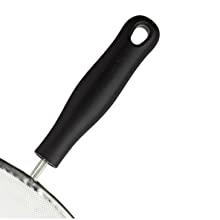 - Easy and safe to use. The long handle keeps your hands away from hot oil, while the mesh screen protects your skin, eyes and clothes