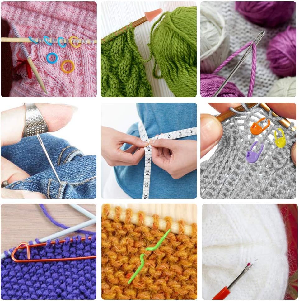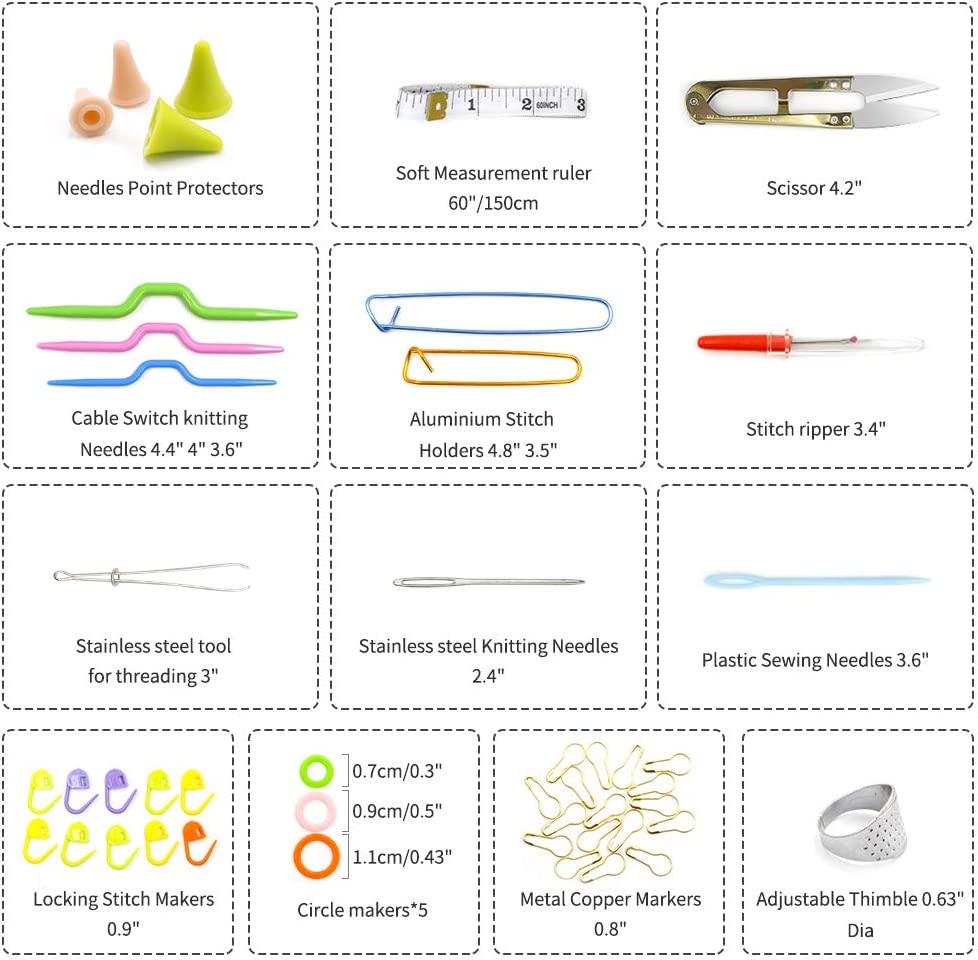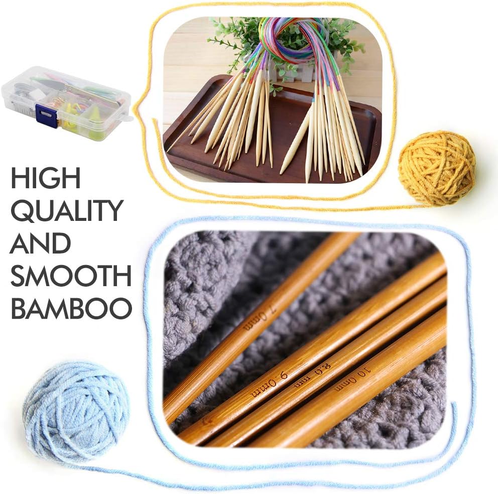 Knitting Needles Set,18 Pairs 18 Sizes Bamboo Circular Knitting Needles with Colored Tube + 36 Pcs 18 Sizes Single Bamboo Knitting Needles+ Basic Knitting Tools Accessories