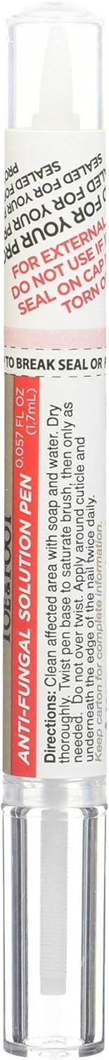 Fungi nail pen contains the same proven effective antifungal formula as fungi nail solution, 25% undecylenic acid. The formula has been successfully treating fungus for more than 25 years. The innovative pen applicator contains a brush tip that allows a no mess, no spill, targeted treatment to help eliminate finger and toe fungus. The Fungi nail pen allows the right amount of anti fungal treatment to be dispensed and its targeted brush tip provides treatment right where you need it under your nail and around the cuticle area.