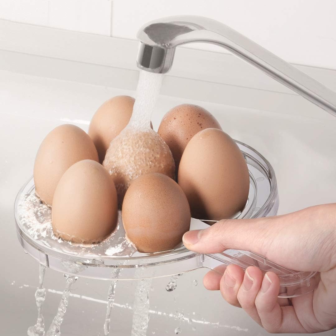 - Egg cooker with removable egg holder cooks up to 7 eggs at a time