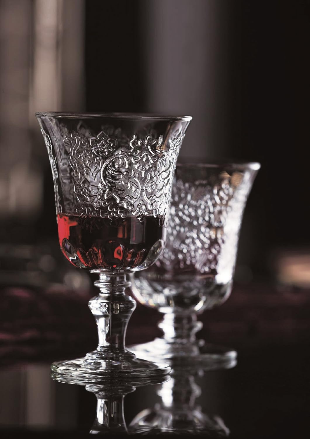 This La Rochere Amboise Stemmed Wine Goblet takes its name from the first Loire Valley Renaissance chateau. Amboise draws its inspiration from 15th century Venetian glasses, with a bowl decorated with almonds and peaks and a raised floral decoration in Renaissance arabesque style around the generous, central heart of the glass. Dishwasher safe. Dimensions: H 154mm Ø 92mm