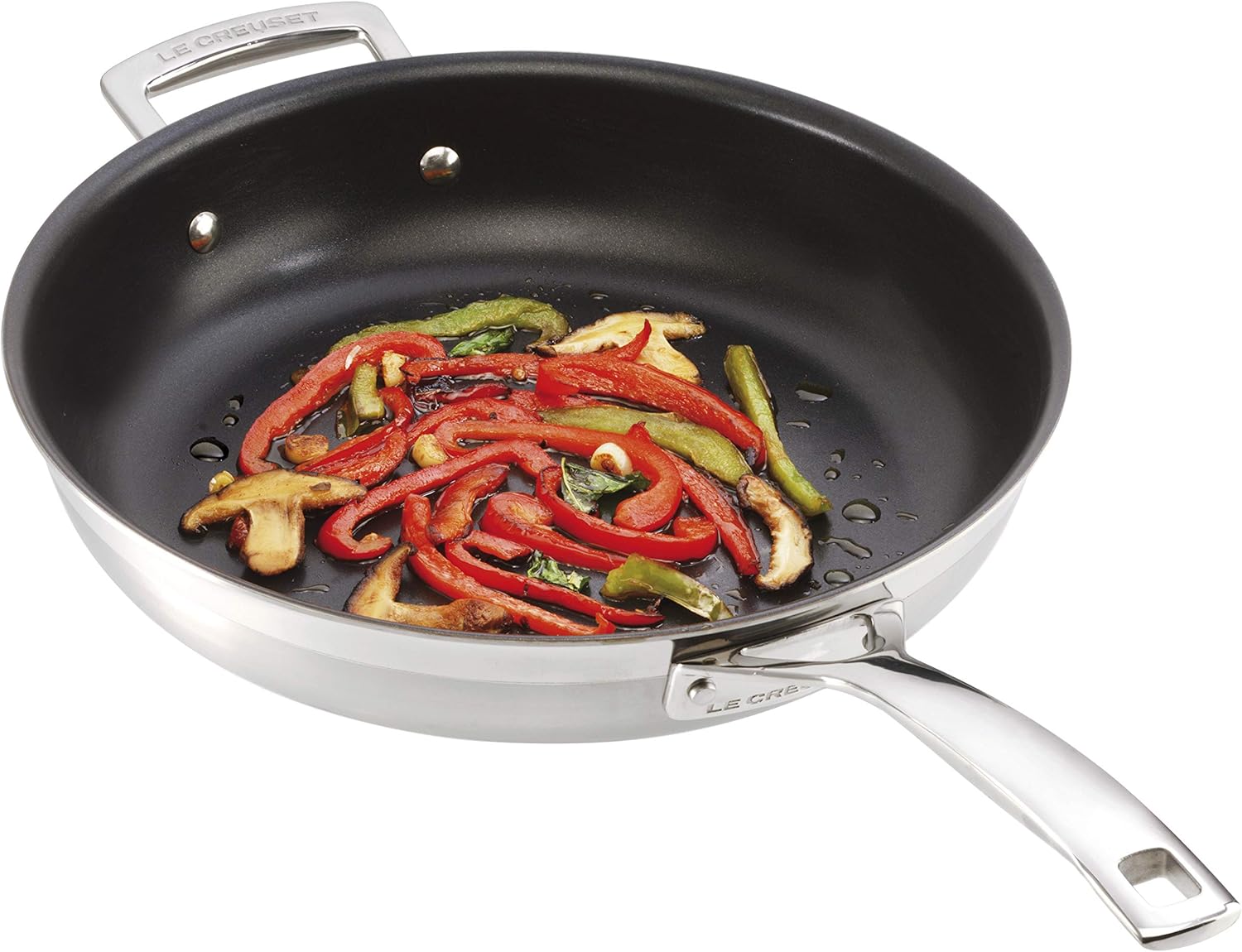 Featuring le Creuset technologically advanced, metal utensil safe and PFOA-free non-stick coating, le Creuset 3-ply Stainless Steel non-stick frying pans are tough, durable and resistant to wear and abrasion. Ideal for healthier cooking, the pans release food so easily that little or no added fat is required. Stylish design and superb cooking results are at the heart of our 3-ply Stainless Steel cookware. Using the latest multi-layering technology, where premium-grade Stainless Steel and aluminium are bonded together to form a special 3-layer material, heat spreads evenly and gently throughout the entire pan from base to rim. Helpful design features, such as capacity markings, helper handles and an all-round pouring rim to prevent drips, means cooking with our 3-ply Stainless Steel cookware is easy and enjoyable. The range is suitable for use on all heat sources, including induction, is oven and dishwasher safe* and comes with a reassuring lifetime guarantee. * see individual product details for full care and use information.