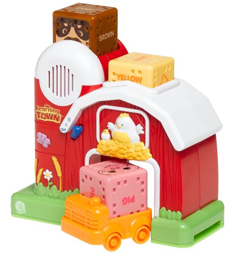 Learning Town Barn Buddies introduces 30+ first words about animals, word-object association, speech and vocalization, and motor skills. The interactive smart block reader calls out first words about animals and each press in the reader delivers up to four unique responses. Baby hears fun words and songs about animals and the drop zone with exciting sound effects encourages tumbling block play. What it Teaches: * 30+ first words about animals * Word-object association * Speech and vocalization * Motor skills