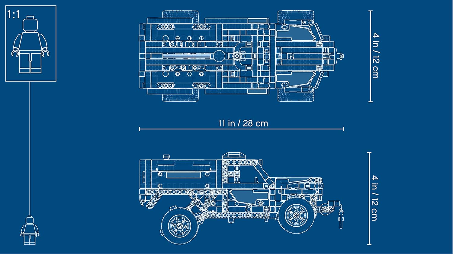 - Features working steering and suspension, working winch, raisable light tower, driver’s cab with opening doors, storage compartment with a selection of tools, wide black rims with chunky tires, blue warning beacons and roof-mounted spot lamps
