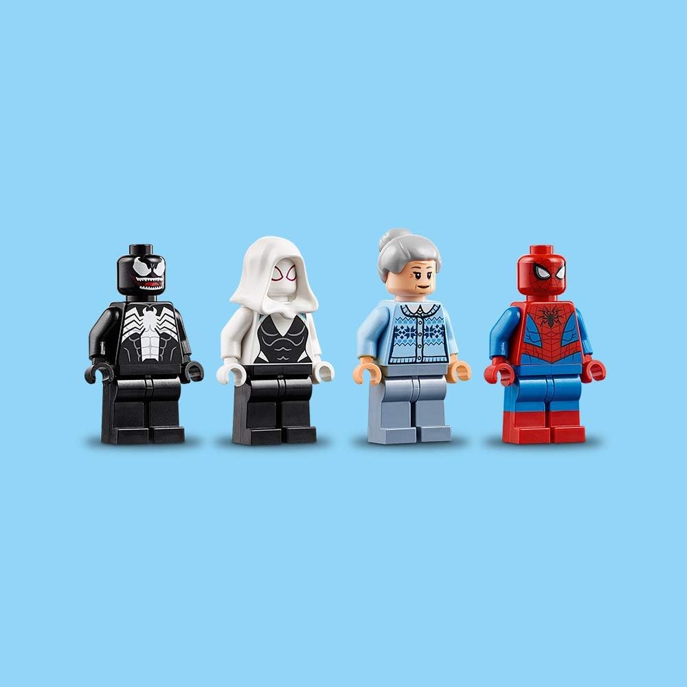 - Includes 4 minifigures : Spider-Man, Ghost Spider with a with stud shooters, Venom and Aunt May