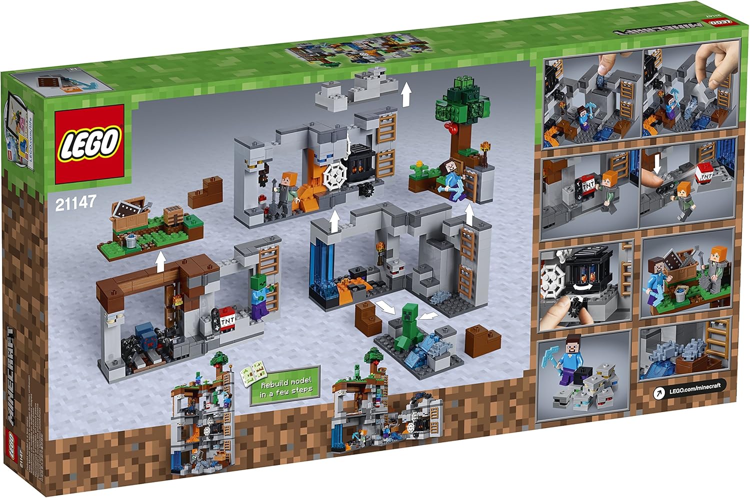 - Includes two minifigures: Steve and Alex, plus a Creeper, cave spider, zombie, bat and two silverfish figures