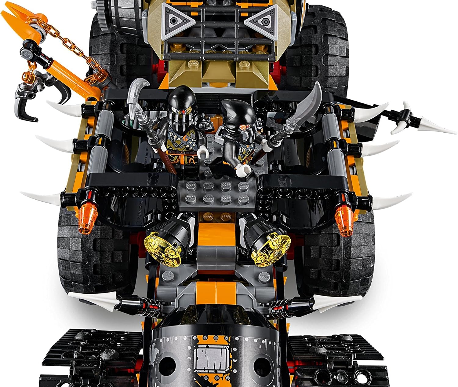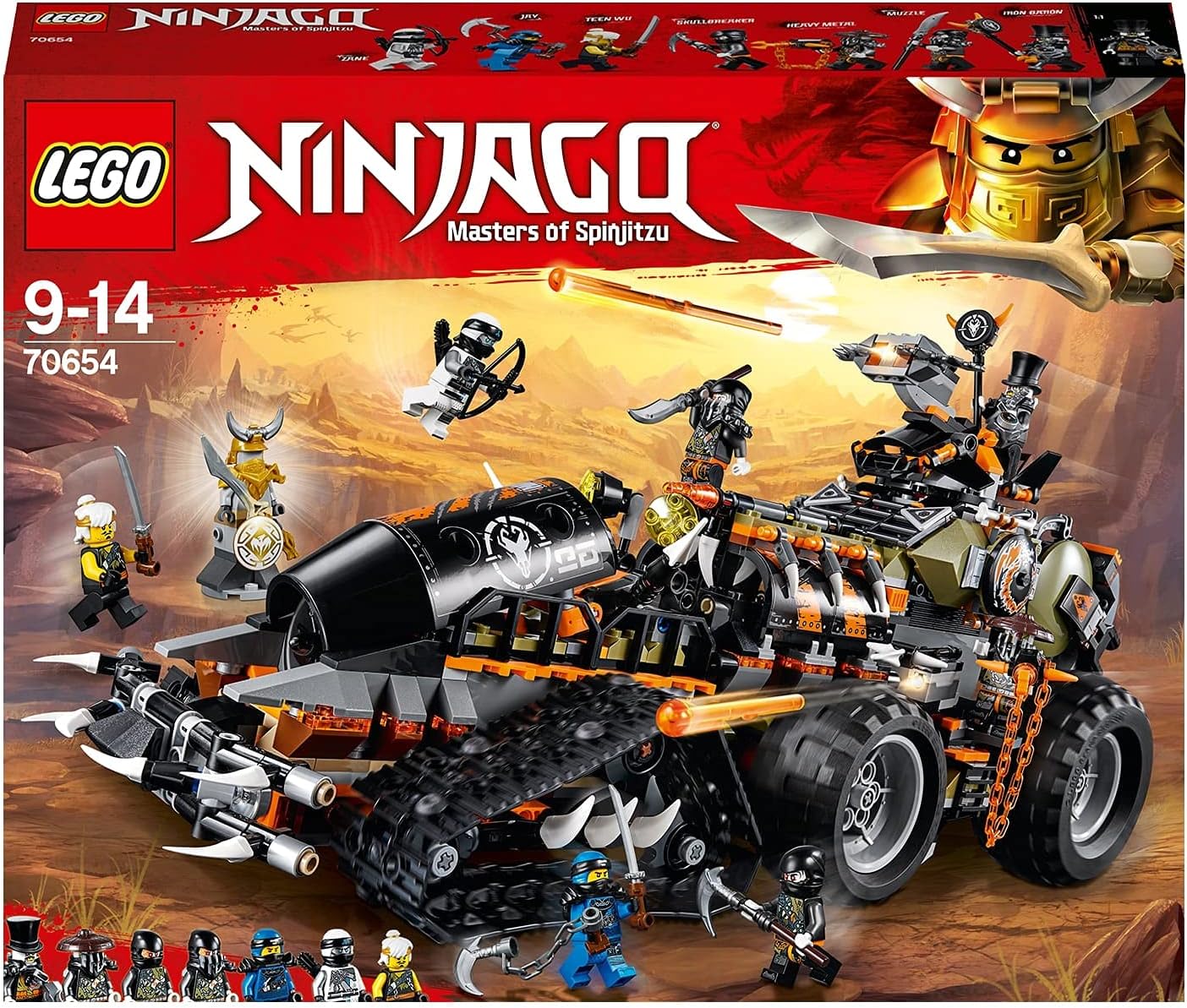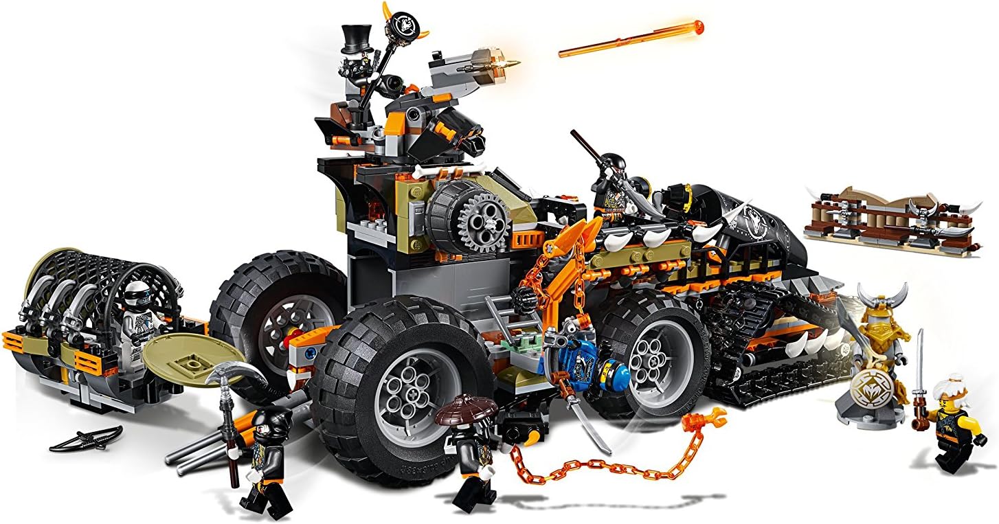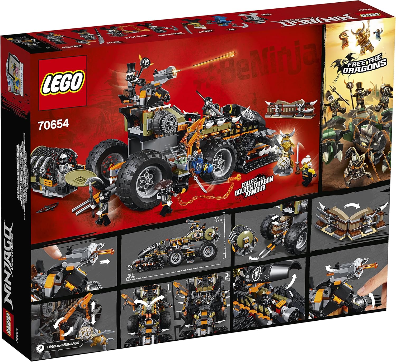 Team up with ninja warriors Teen Wu, Jay and Zane to confront the LEGO NINJAGO 70654 Dieselnaut Tank Toy, featuring rotating turrets with spring-loaded shooters, an opening minifigure cockpit, minifigure platform with fully opening roof, crane function, jail and hidden weapon rack. This set also includes a statue with all 4 of the collectible Dragon Armor elements, plus 7 LEGO NINJAGO minifigures with assorted weapons. Contains 1179 pieces. Dieselnaut measures over 7 Inch (18 cm) high, 19 Inch (49 cm) long and 9 Inch (23 cm) wide. Find more collectible Dragon Armor in 70650 Destiny’s Wing, 70652 Stormbringer, 70653 Firstborn and 70655 Dragon Pit.