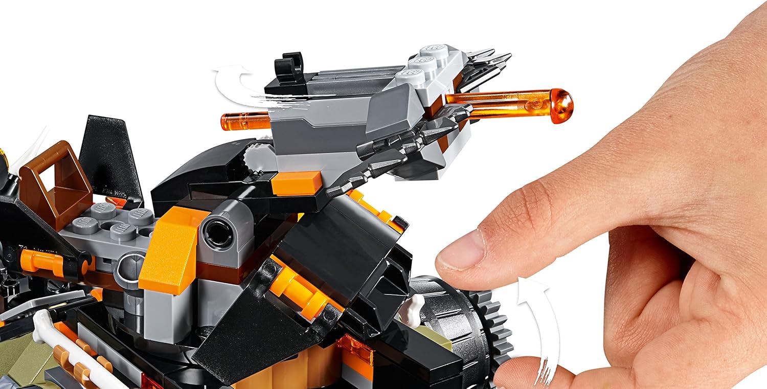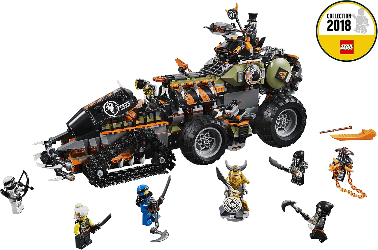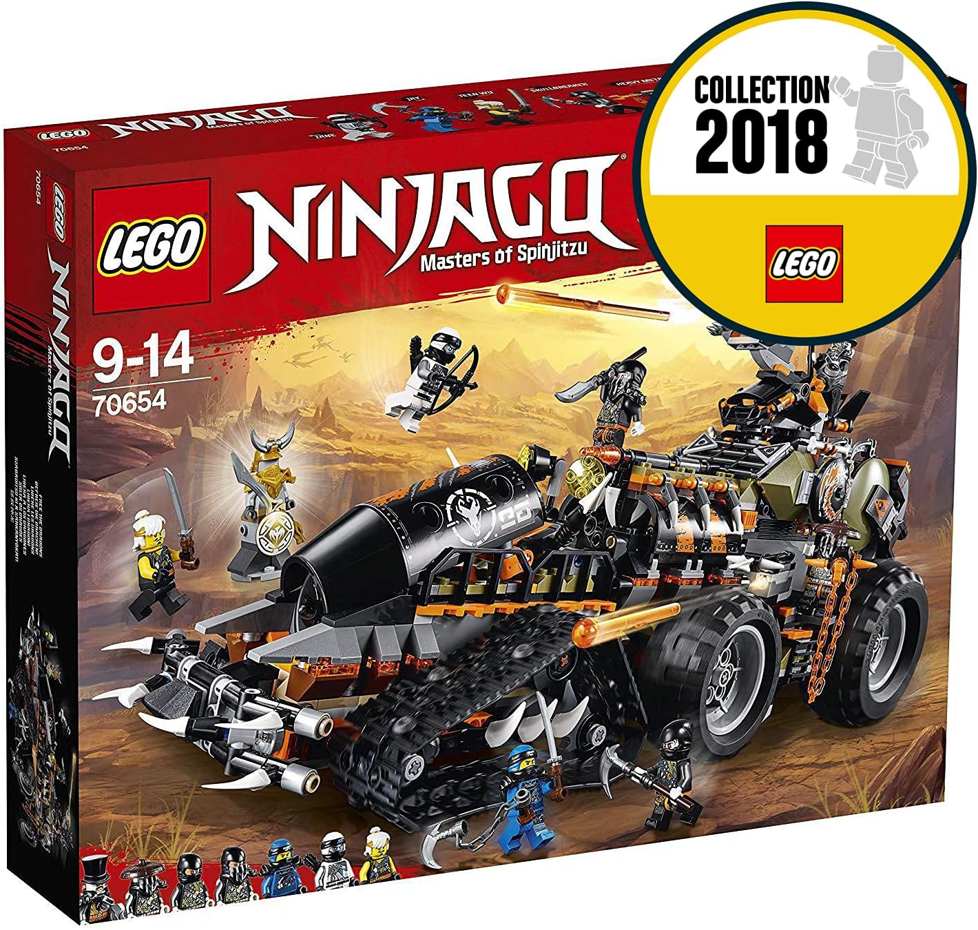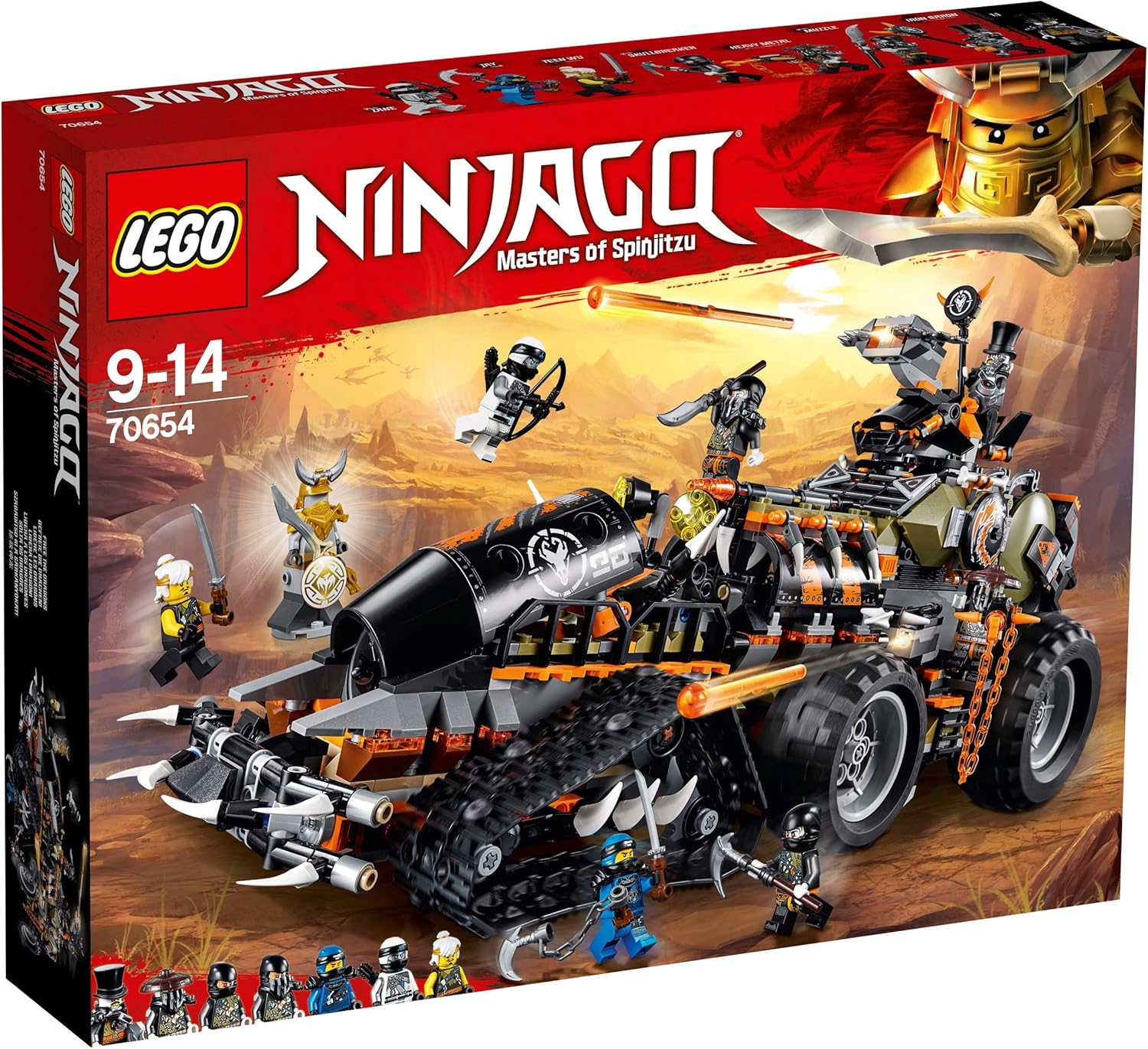 Team up with ninja warriors Teen Wu, Jay and Zane to confront the LEGO NINJAGO 70654 Dieselnaut Tank Toy, featuring rotating turrets with spring-loaded shooters, an opening minifigure cockpit, minifigure platform with fully opening roof, crane function, jail and hidden weapon rack. This set also includes a statue with all 4 of the collectible Dragon Armor elements, plus 7 LEGO NINJAGO minifigures with assorted weapons. Contains 1179 pieces. Dieselnaut measures over 7 Inch (18 cm) high, 19 Inch (49 cm) long and 9 Inch (23 cm) wide. Find more collectible Dragon Armor in 70650 Destiny’s Wing, 70652 Stormbringer, 70653 Firstborn and 70655 Dragon Pit.