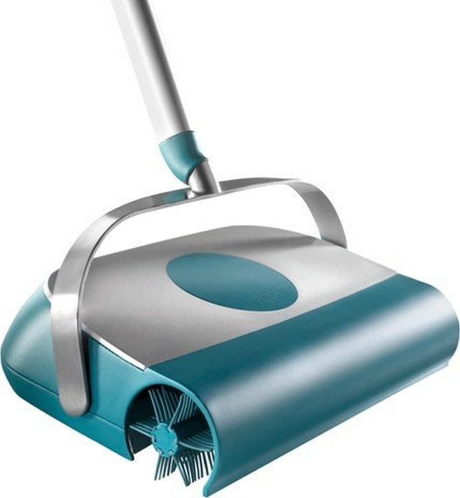 Carpet sweeper Regulus Supra brings cleanliness into the house in a matter of seconds. With its mechanical drive the manoeuvrable sweeper is immediately ready for use – completely without electricity and without battery – no annoying cable to roll up or to unwind, no weight that has to be pulled or carried through the flat, no noise and no electricity consumption. Carpet sweeper Regulus is ready for use before the vacuum cleaner is employed. The power is also right: the special supra brush collects dust, dirt, crumbs and hairs from every floor, whether smooth floors like tiles and laminate or from carpets. The brush sweeps exactly up to the skirting board, without leaving a dirty edge. After the sweeping it can easily be taken and cleaned using running water. The dirt is collected in a dust container instead of a bag. When it is filled, it can be emptied fast and hygienic. The hands are not brought into contact with the dirt. Particularly practical is the enormous flexibility of the sweeper. The joint reacts to every movement and revolves easily table- and chair-legs. The handle can be bent for the sweeping under armoires and beds. Carpet sweeper Regulus supra consists of a sturdy metal casing and has a sweeping width of 10 inches. 3 years guarantee.