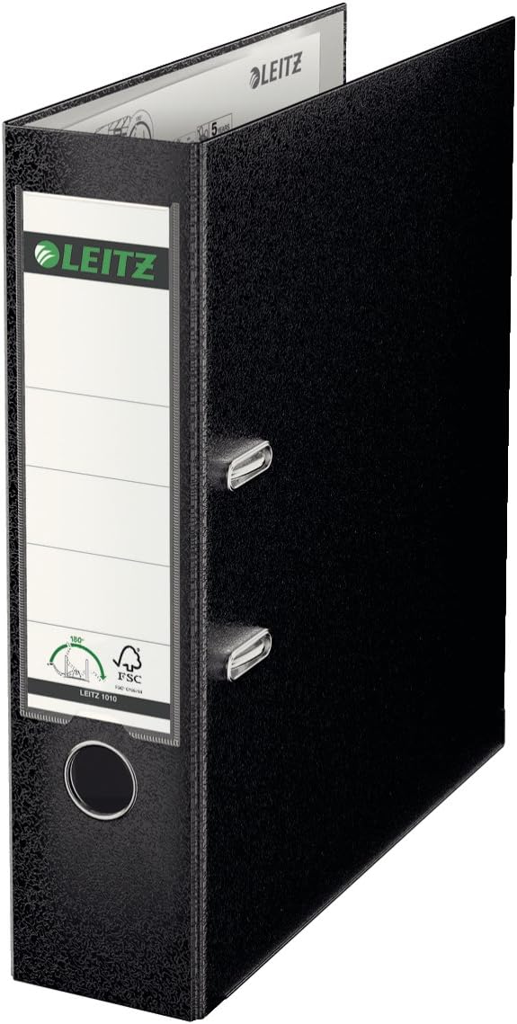 Leitz 10101095 180 Degrees Plastic Lever Arch File A4 80 mm – Black, Pack of 10