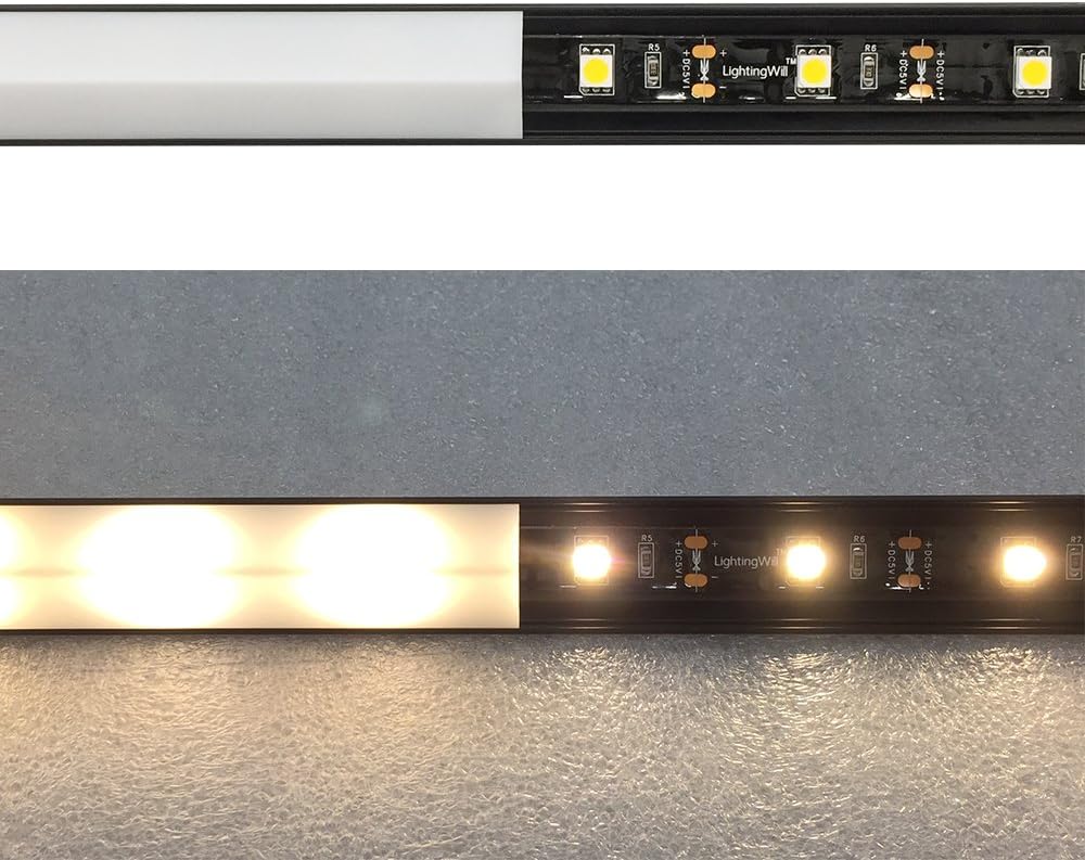1. This V-shape aluminum channel has a 90-degree vertical angle difusser, softens the “spottiness” of LED strip lights, producing a more consistent and pleasing light.