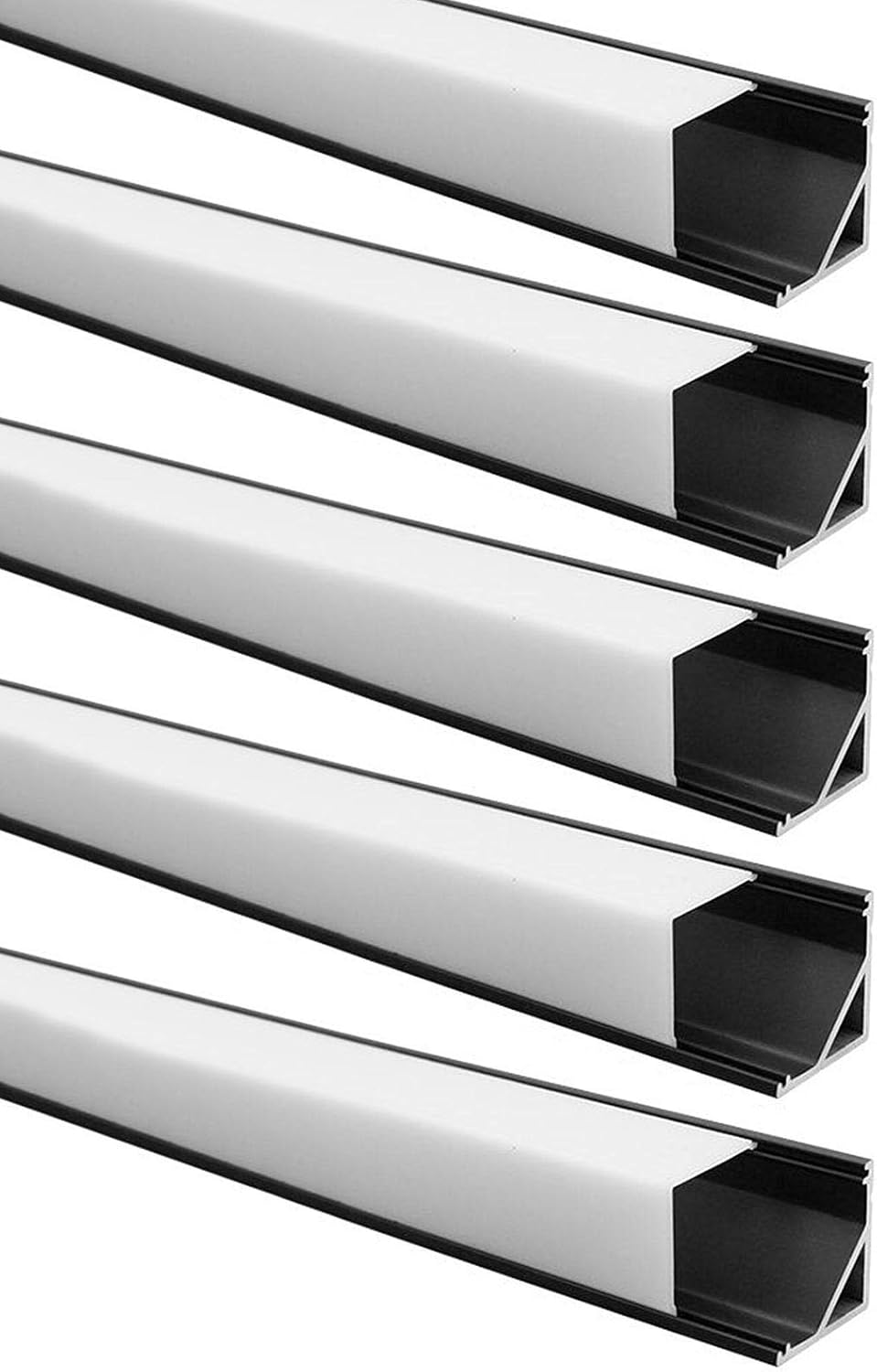 LightingWill 5-Pack V-Shape LED Aluminum Channel System 3.3ft/1M Anodized Black Flush Corner Mount for <12mm Width SMD3528 5050 LED Strips with Oyster White Cover, End Caps and Mounting Clips V03B5