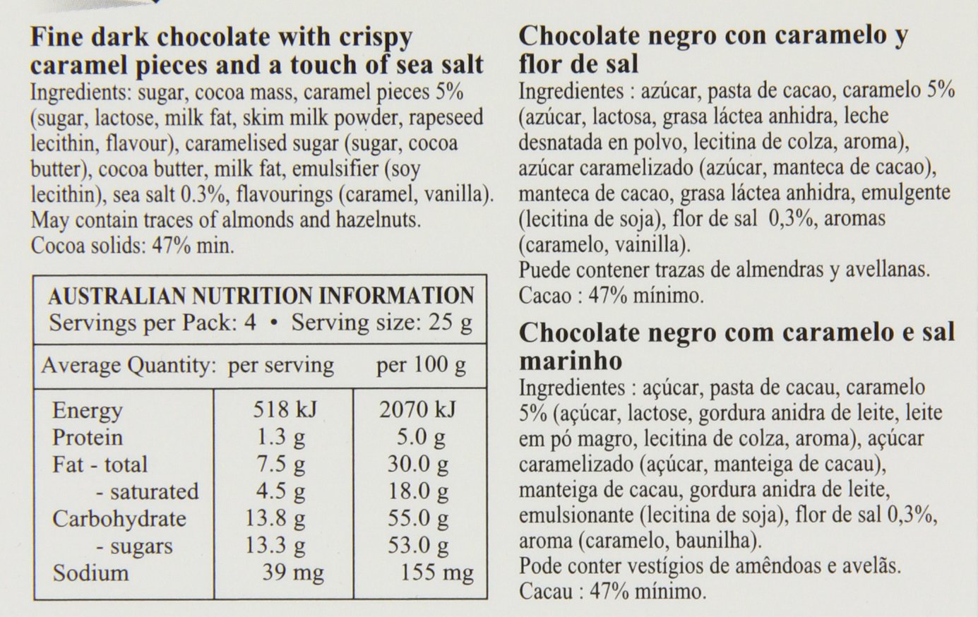 Lindt – Excellence – Dark Caramel with a Touch of Sea Salt – 100g (Pack of 10)