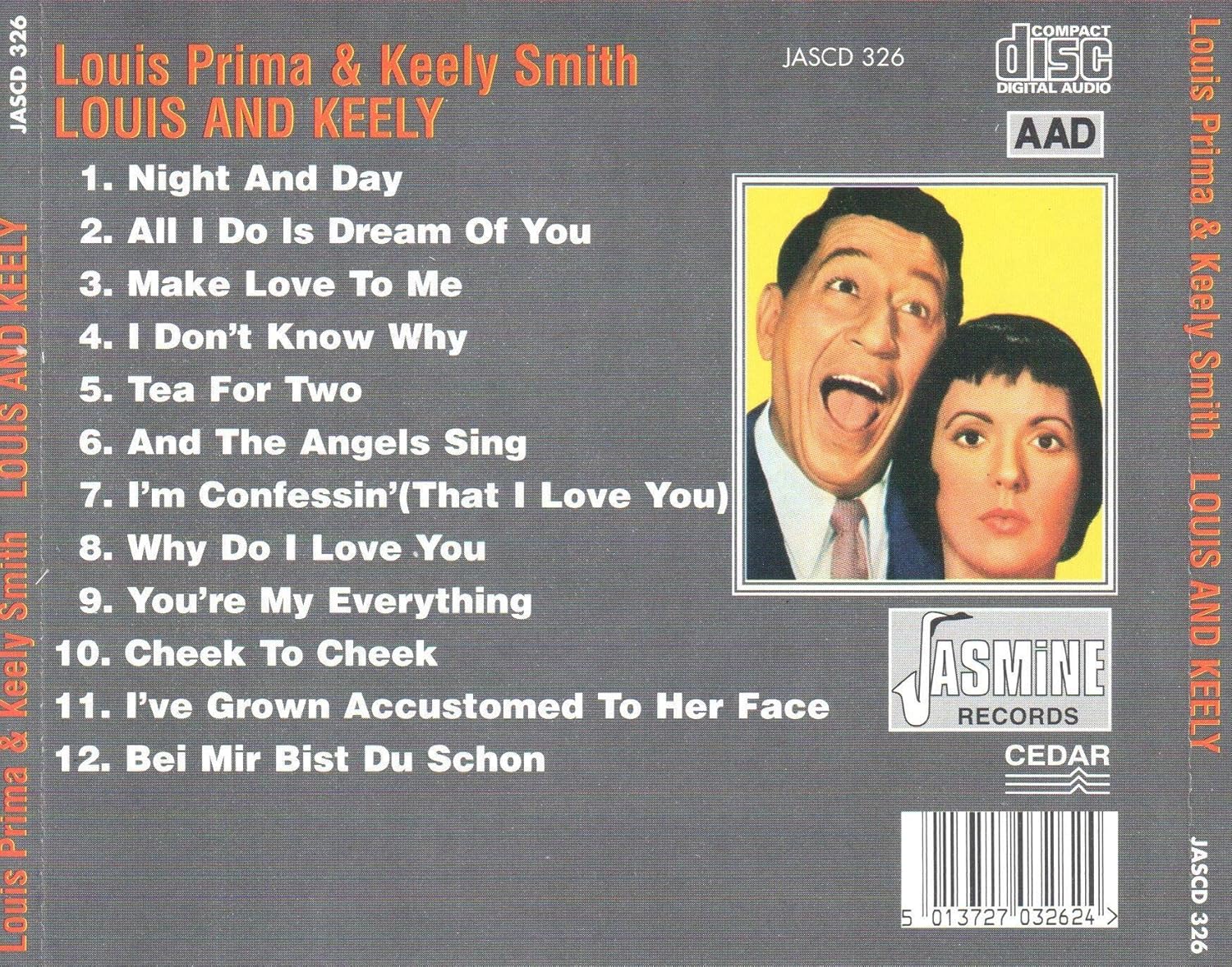Louis Prima and wife Keely Smith released several collaborations, but this 1960 import re-issue showcases on of their best. Recorded for DOT records in 1960, Louis & Keely features the duo performing swinging romantic tunes such as "Night And Day", "I’m Confessin’ (That I Love You)", and "And The Angels Sing". Smith’s vocal talents are at their peak (she overpowers Prima on several numbers), and the band is in top form. Prima was a master at transforming tried-and-true vocal standards into powerful Jazzy numbers; this disc is no exception. The album closer "Bei Mir Bist Du Schon" is one of the pairs finest moments.