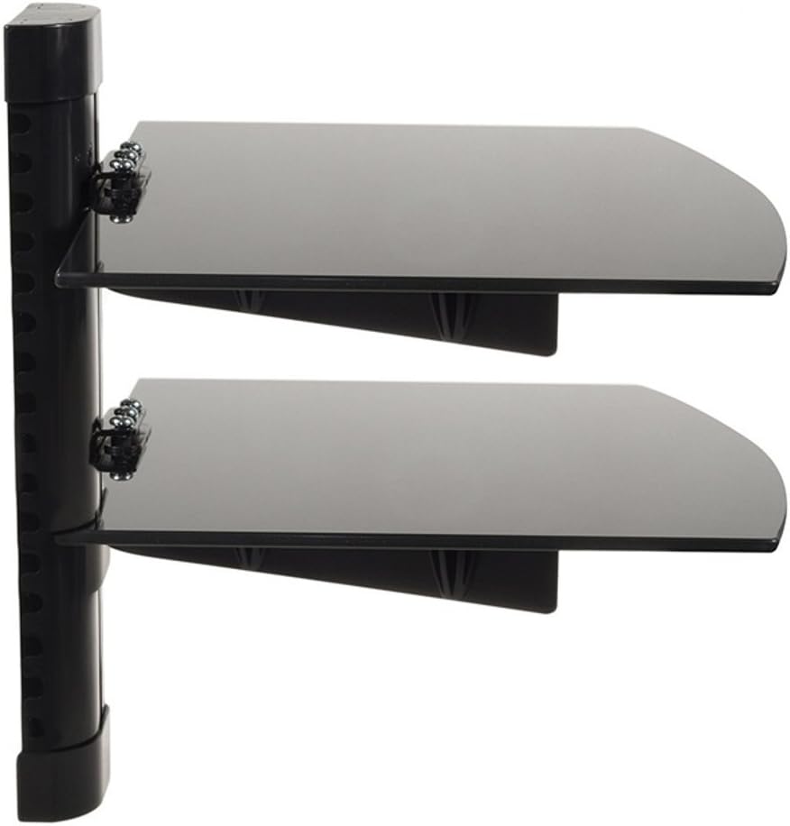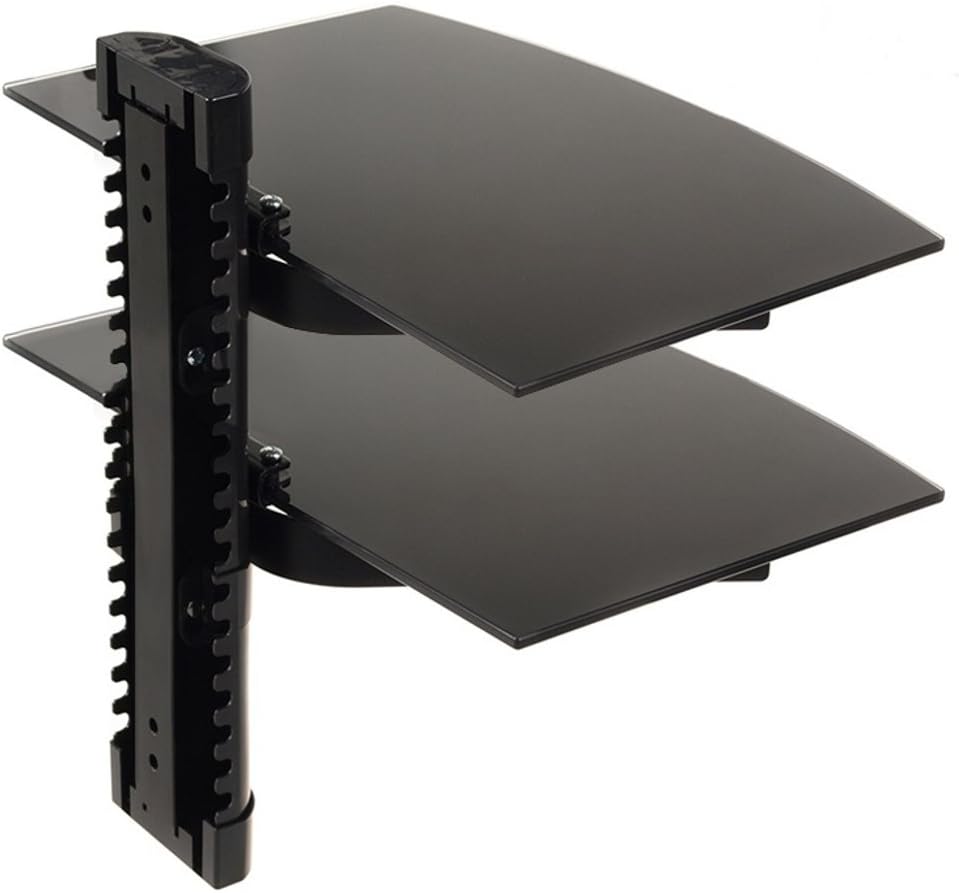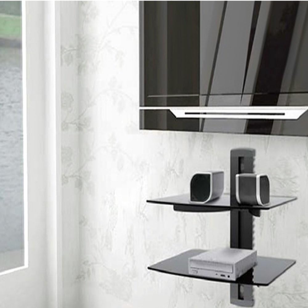Support DVD Console PS3 Xbox CABLE MANAGEMENT There is nothing more frustrating then messy cables lying around your room – luckily thanks to the handy cable organiser you will be able to avoid that, and hide all your cables from sight. HEIGHT ADJUSTMENT The tempered glass shelves height can be adjusted according to your needs – simply select the desired height and the shelf is ready to use. COMPATIBILITY Compatible with all types of DVD/Blu-ray player, cable/satellite receiver boxes, stereo components and Xbox, PS4, or Nintendo gaming consoles. Height adjustment Material: Tempered glass, heavy-gauge aluminum Color: Black Cable management system Dimensions: 360×283,5x402mm Thick, 5mm, Tempered Glass Safe and easy wall mount Supports: 8 kg (each shelf) Warranty: 24 months The Maclean 1,2,3, tier entertainment shelves are perfect for support for all your TV peripherals like DVD’s, Blue-Rays, consoles and more. The design blends with your entertainment boxes, and looks great in any interior, while taking little space. Thanks to the clever design, all your cables can be neatly hidden from sight, making the space around your TV look clean and tidy. Maclean floating shelves allow you to organise your devices, and make your room look more attractive at the same time ! Solid and stable aluminum frame with a powder coated finish combined with all-black, thick, tempered glass blend perfectly with entertainment boxes. The slim design is an excellent fit for modern flat TV’s and both combined will become an asset to your rooms design.
