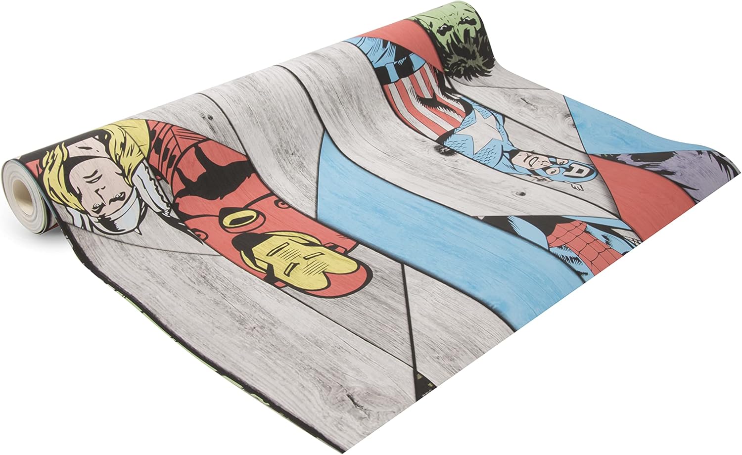 this Marvel Wood wallpaper from kids at home depicts the popular superhero team “The Avengers” From the Marvel Comic Book universe. Your kids will love seeing their heroes on their walls! When applying paper Wallpaper, there are some points you should pay attention to. The first one is that the glue is applied only to the wallpaper itself. This means you should cover the paper in glue and leave it to soak for at least 5 minutes before pasting it to the wall. And most importantly, when putting the wallpaper on the wall, You are advised to draw a plumb line carefully. In preparation, we advise you to follow the included instructions and ensure the wall’s surface is clean, dry, sound, and uniform in colour. Any stains should be washed off from the wall. Colour: greyMaterial: papersize: 10 x 0.53 m (L x W)pattern repeat: 53 cm (straight match)Easy to apply, glue is applied directly on wallpaperEasy to remove