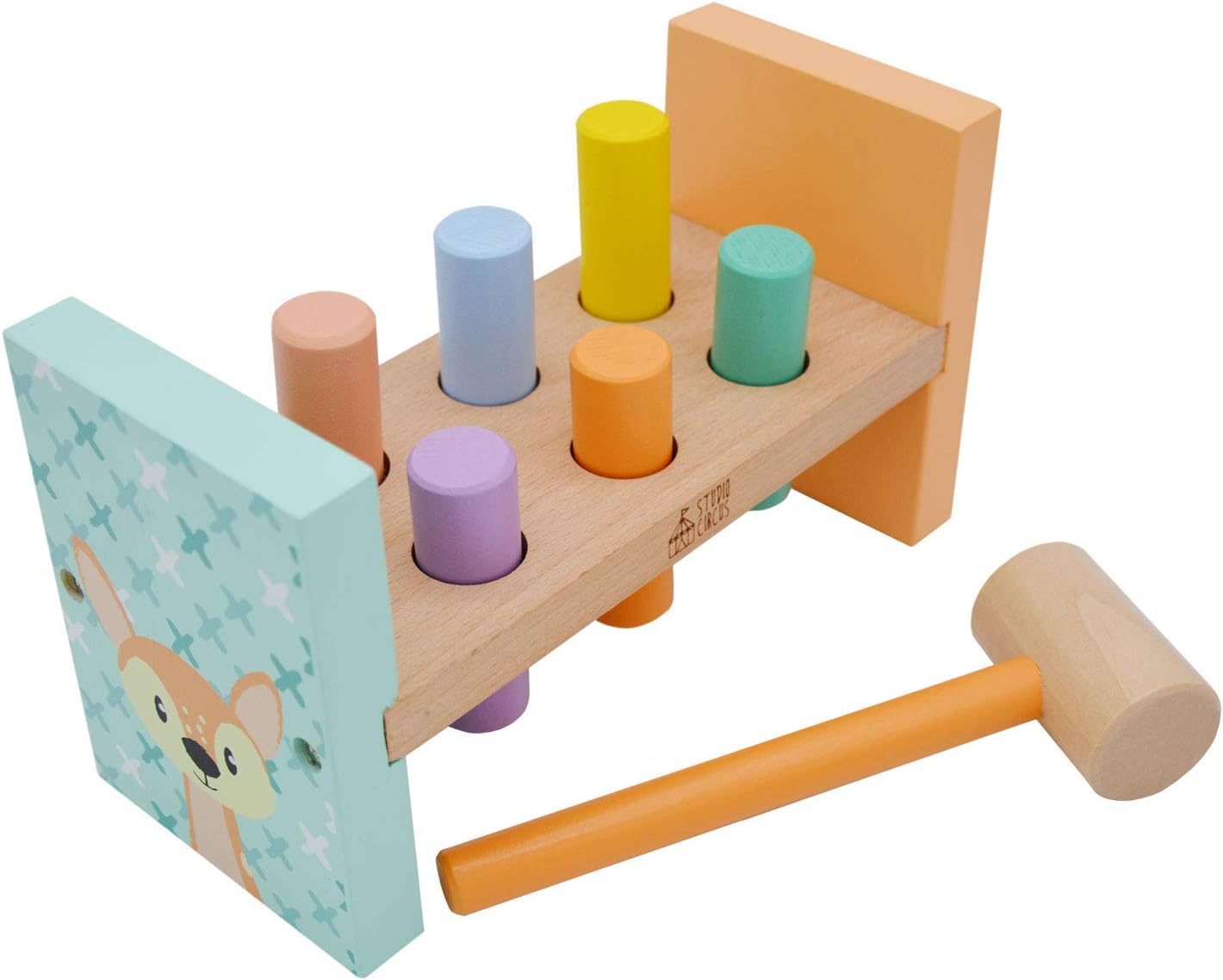 MAXZONE jumini Toy Wooden Hammer Bench – Pound a