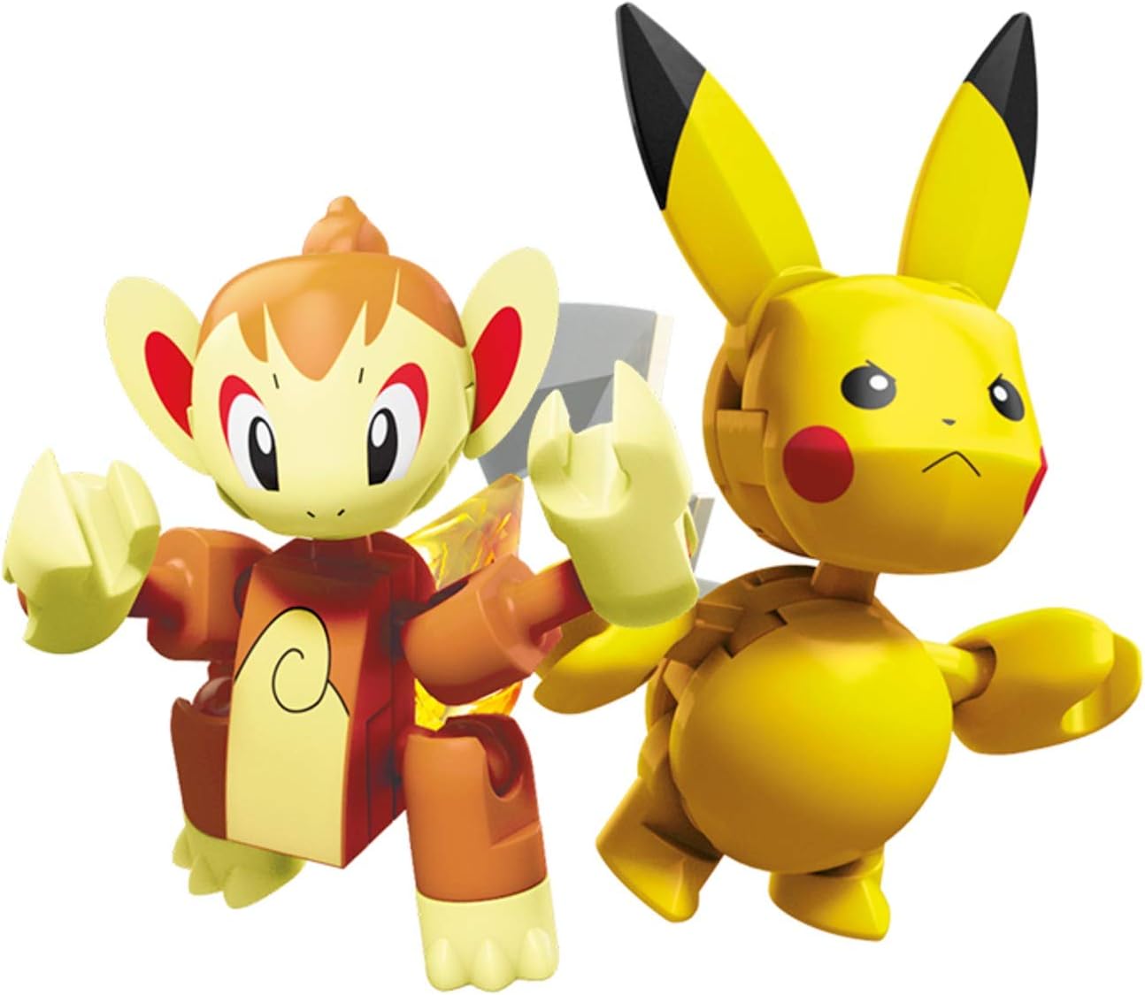Be shocked by the heat of the battle when Pikachu faces off against Chimchar! Choose your Pokemon and train to face your destiny! It’s Pikachu vs. Chimchar when you create your own showdowns between these two opposing Pokemon! Build your Pokemon, set the scene for a battle, then swing Chimchar from the light pole, knock Pikachu from the bench – or counter with its Iron Tail attack – and watch sparks fly! Ideal for ages 6 and up.
