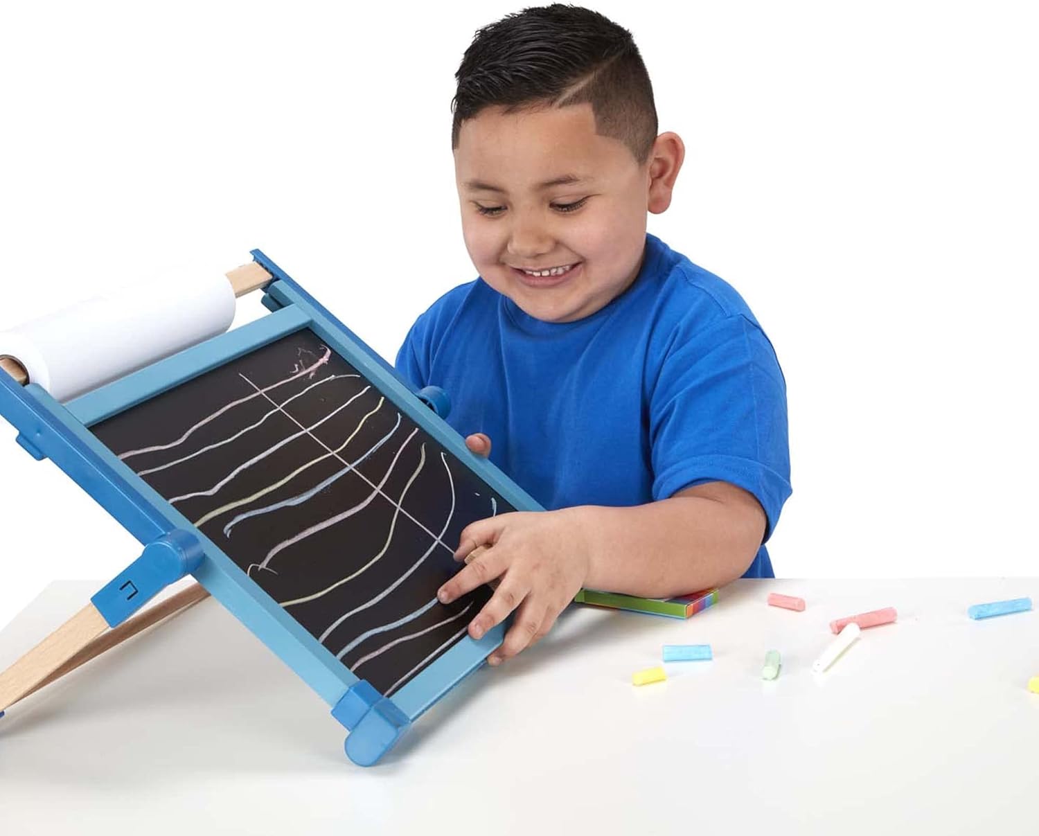 Marker, Chalk & EraserEasel comes with a dry-erase marker, 5 colour chalk sticks, and a felt eraser. |