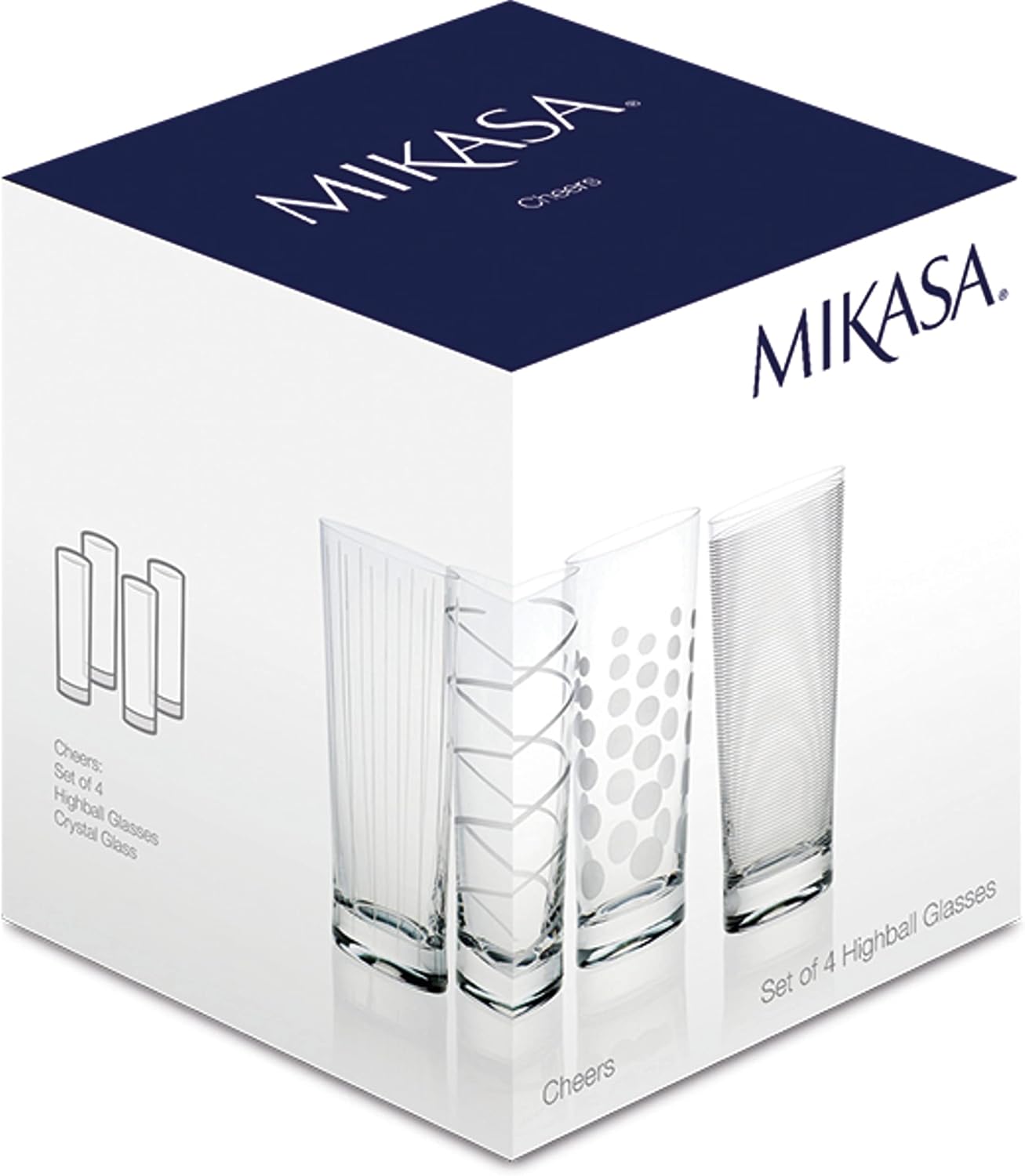 Mikasa Set of 4 Cheers Crystal Highball Tumbler Glasses, Silver