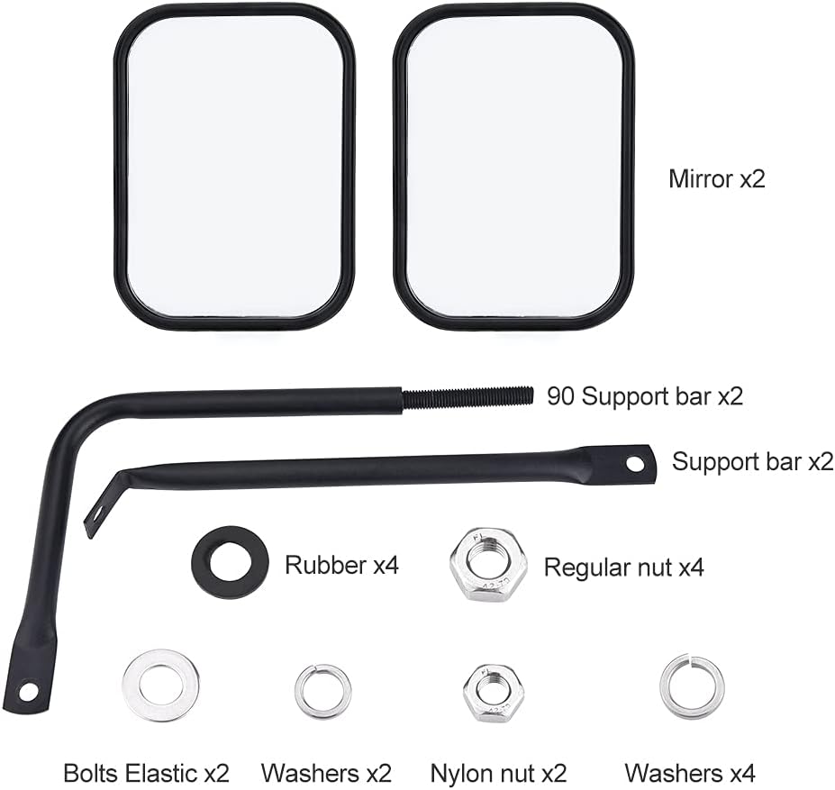 - ★Premiun material – The doors off rectangular side mirror replacement for Jeep is made of iron and durable black powder coating, our bar’s are made of high-quality rubber, strong structure, wear-resistance.