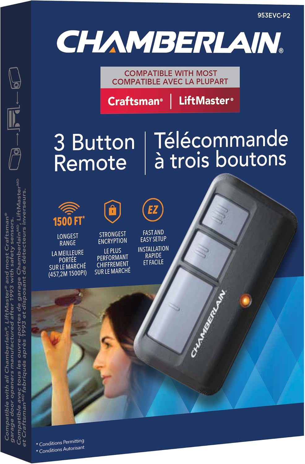 This three-button remote operates up to three Chamberlain garage door openers and/or accessories. Ideal for adding an extra remote to multi-car families or for replacing a lost or broken remote control it includes a visor clip for in-vehicle use.