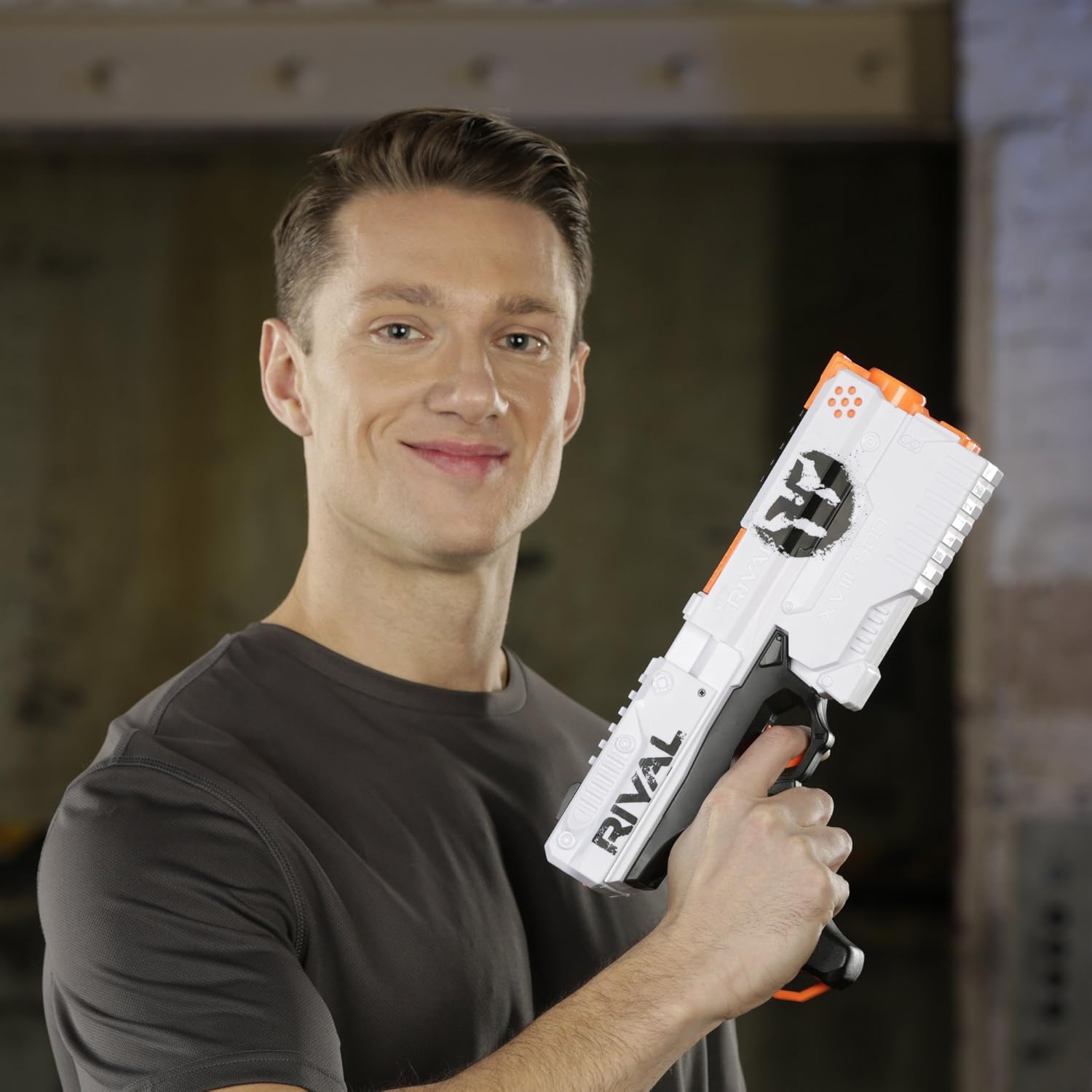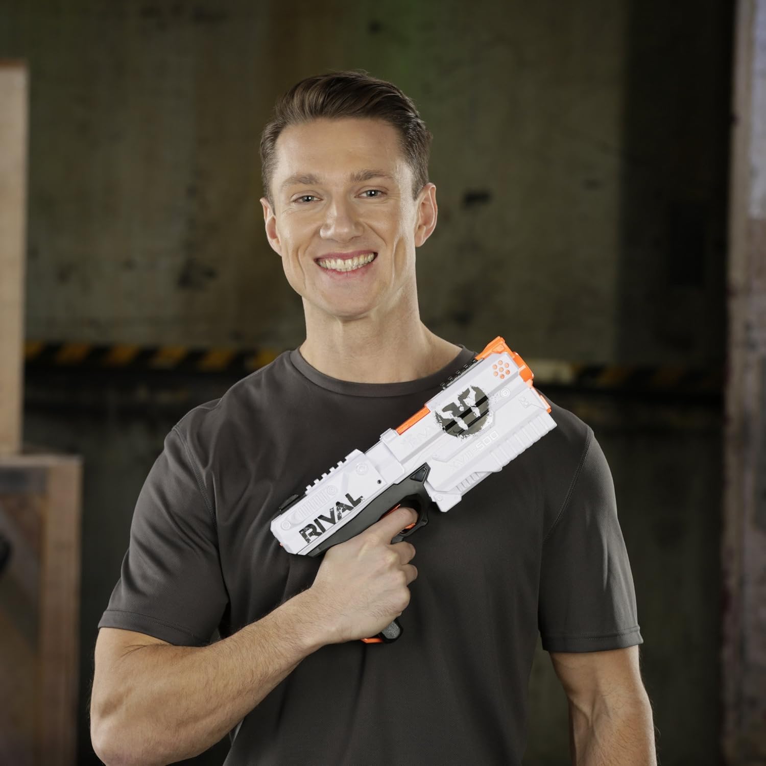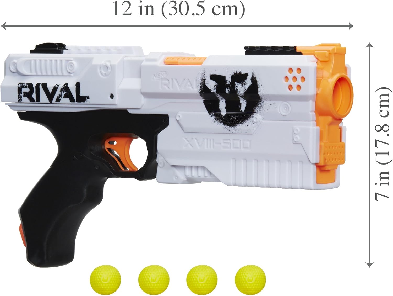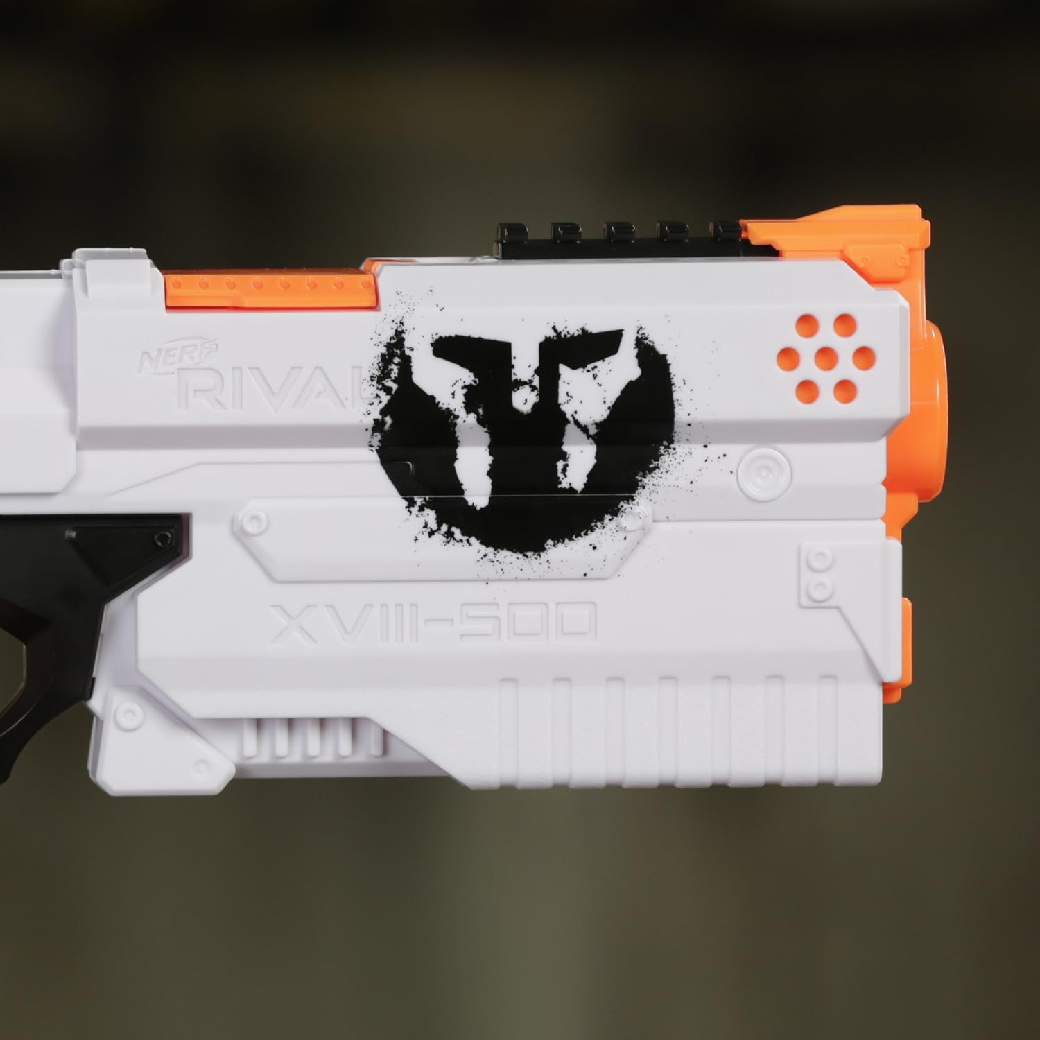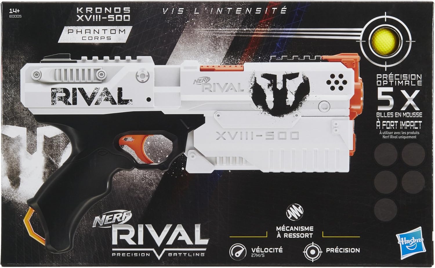 Rival with your opponents thanks to the precision and power of the Nerf Rival Kronos XVIII-500! The Nerf Rival Kronos XVIII-500 has great power despite its compact design. With a capacity of 5 foam balls (included) and a spring mechanism, you can throw foam balls up to 100 km/h. Comes with two flags to choose your team: red or blue. Players can attach them to the Nerf or wear them when they join the team of their choice or capture them as part of the battle.