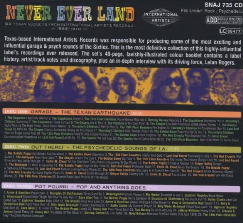 2008 three CD set that collects classic tracks from the label’s flagship acts like the 13th Floor Elevators, the Red Crayola, the Bubble Puppy and Golden Dawn alongside a host of sought-after lesser known gems from the likes of Thursday’s Children, the Chaynes, the Rubayaat, Sterling Damon and the Shayds. Quite a number of these tracks are here making their CD debut, several not having seen the light of day since their first release 40 years ago. Meticulously researched, compiled and sequenced, each of the set’s three discs has been carefully themed: Disc One features the label’s renowned Garage acts. Disc Two concentrates on it’s prime Psychedelic recordings. Disc Three delves deep into the label’s archives and demonstrates the wide range of music the label embraced and includes rocking blues, more mainstream pop, country, soul and oddities.
