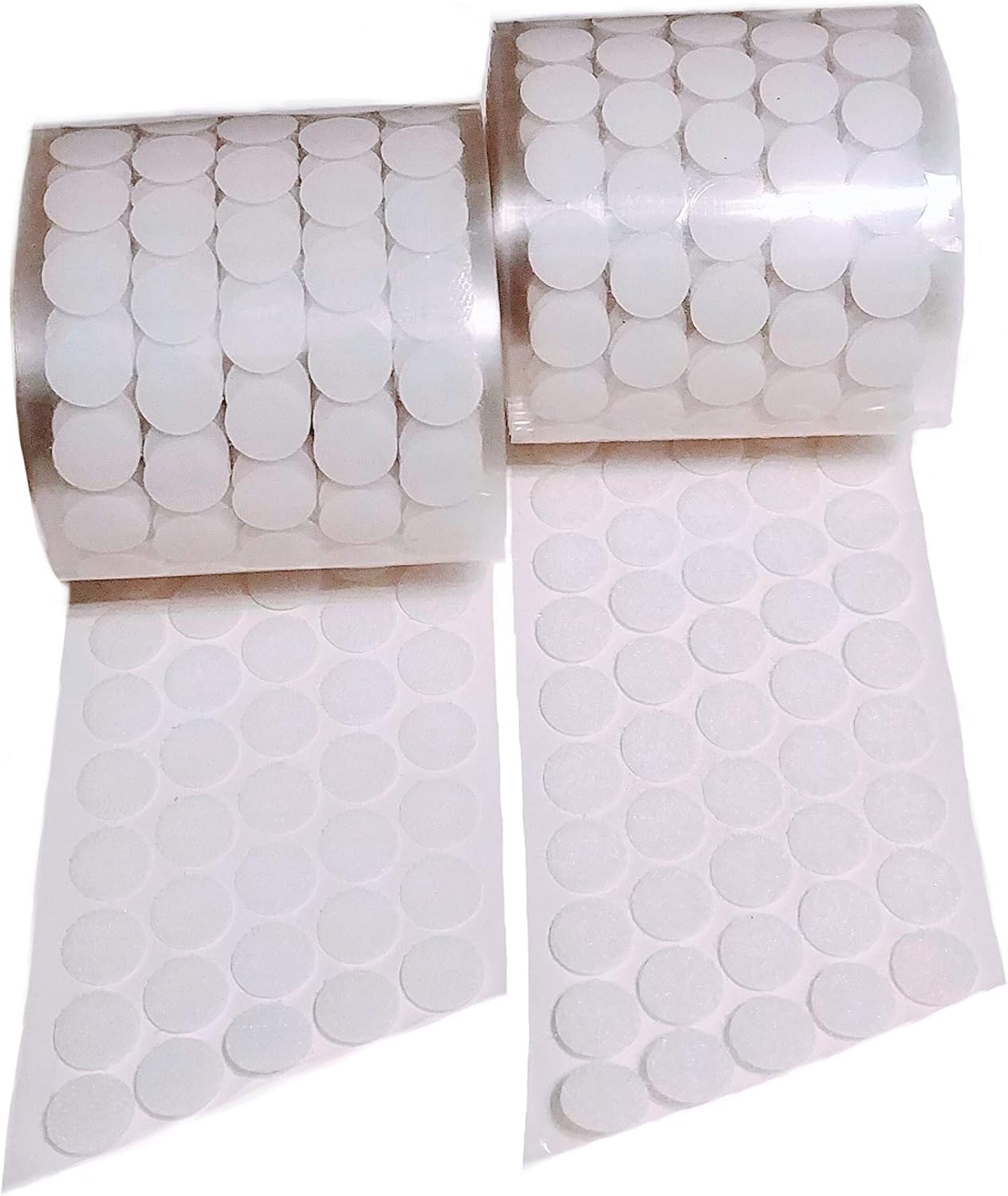1000 pieces Hooks and 1000 peices Loop Coins. (1000 sets Total). Easy to peel and stick. Hang pictures, art, remotes, baby moniters, flash cards and more! These hook and loop touch fasteners have a long lasting strong adhesive that adheres well to multiple smooth surfaces (painted walls, cabinetry, plastic, glass etc.).