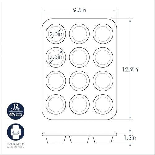 • Baked goods rise and bake evenly due to aluminums superior heat conductivity and the reinforced encapsulated steel rim prevents warping