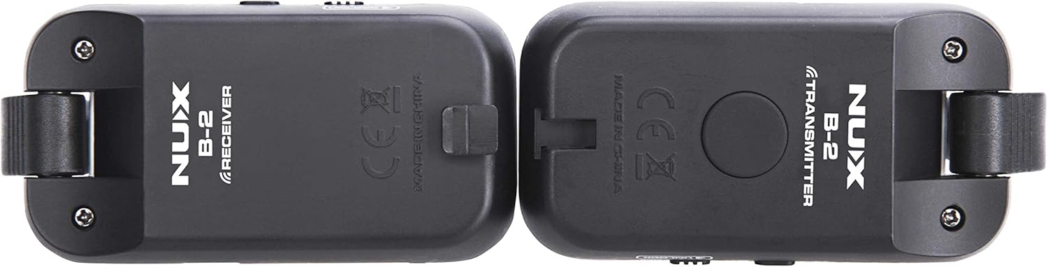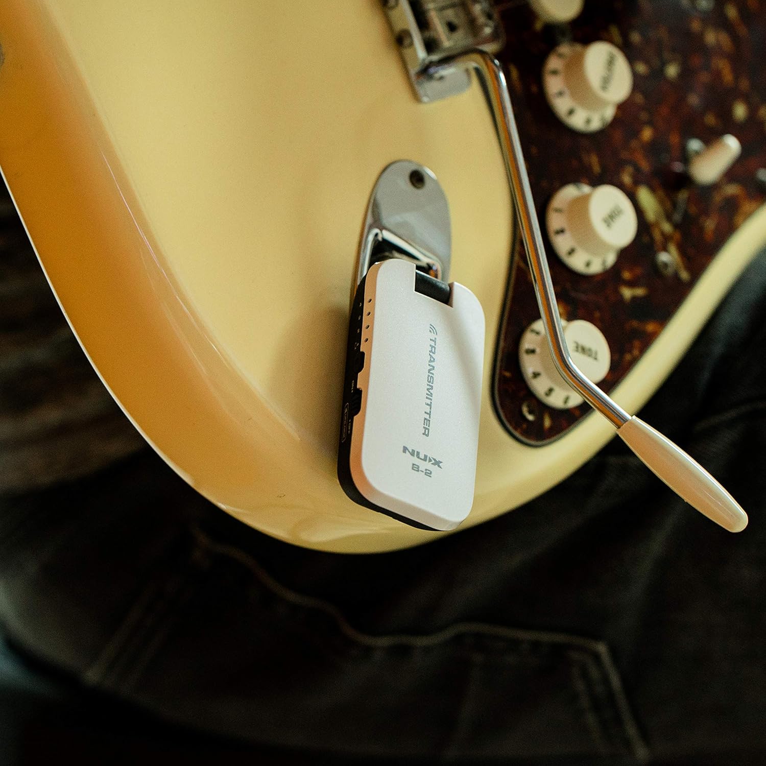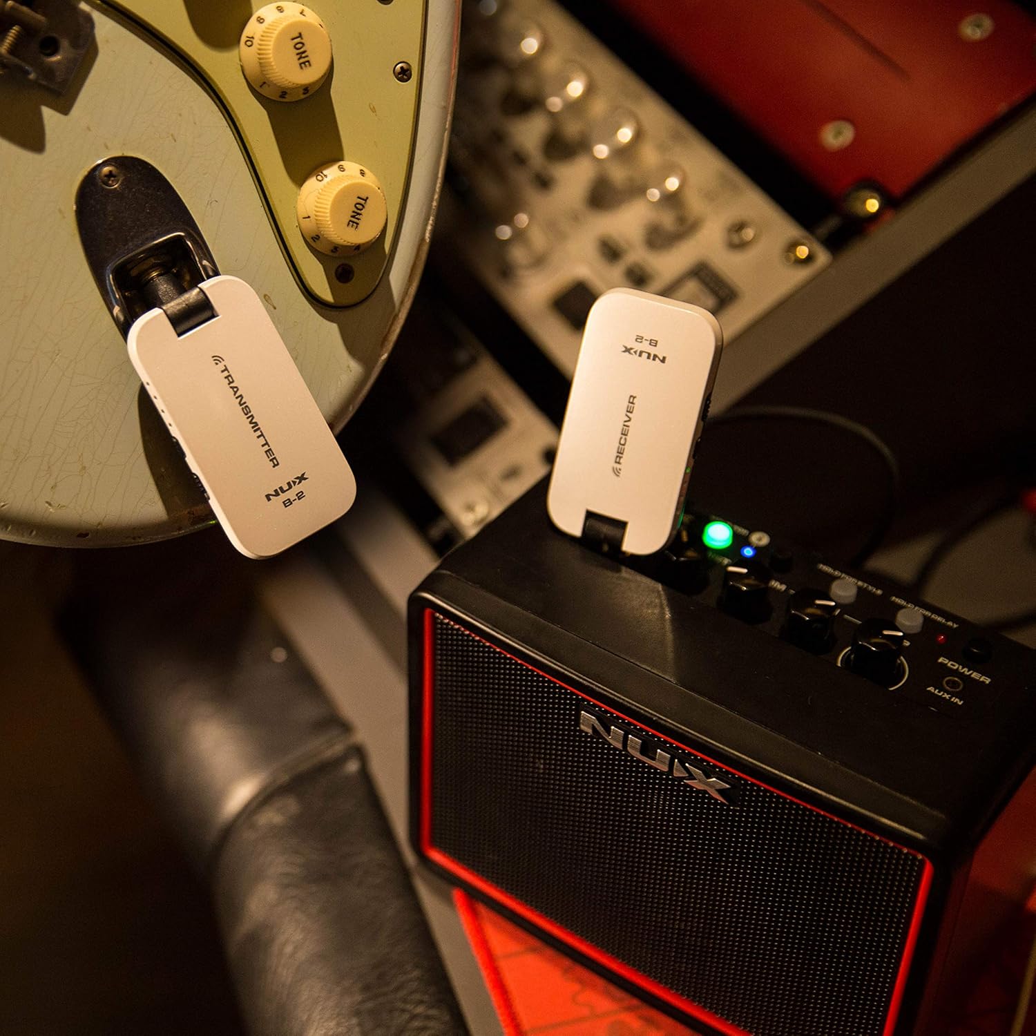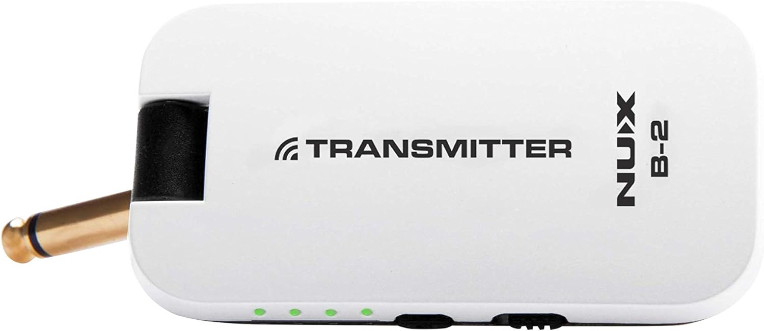 NUX B-2 Guitar Wireless System 2.4GHz Rechargeable 4 Channels Wireless Audio Transmitter Receiver 4ms Latency 48KHz Sampling 32bit Audio Quality 100 Feet Walk Range for Passive Pickup (White)