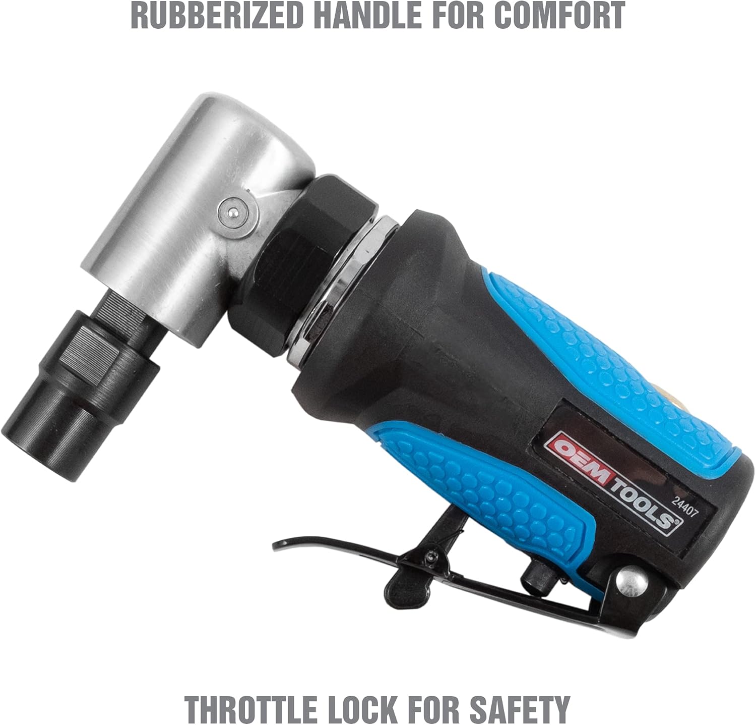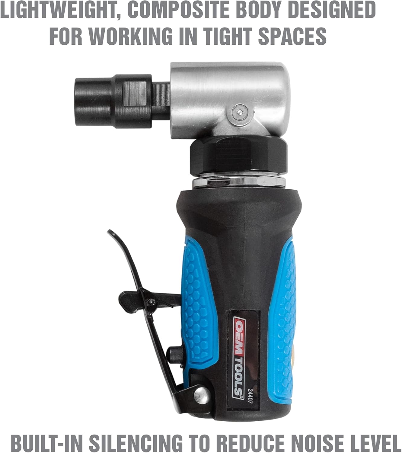 OEMTOOLS 24407 1/4 Inch Mini Angle Air Die Grinder, Cordless Die Grinder, Right Angle Air Die Grinder for Sanding, Polishing, and Carving in Tight Spaces
