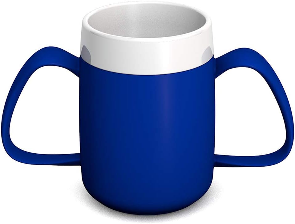 The two handled spouted mug is ergonomically shaped which makes it easy to grab and guarantees secure hold whilst drinking – also when dealing with strong shaking or muscle weakness. The mug spreads good mood in everyday life in blue, green, red, yellow and blackberry and makes life in care institutions or hospitals a bit more colourful. The bright colours also make the mug easily recognisable.