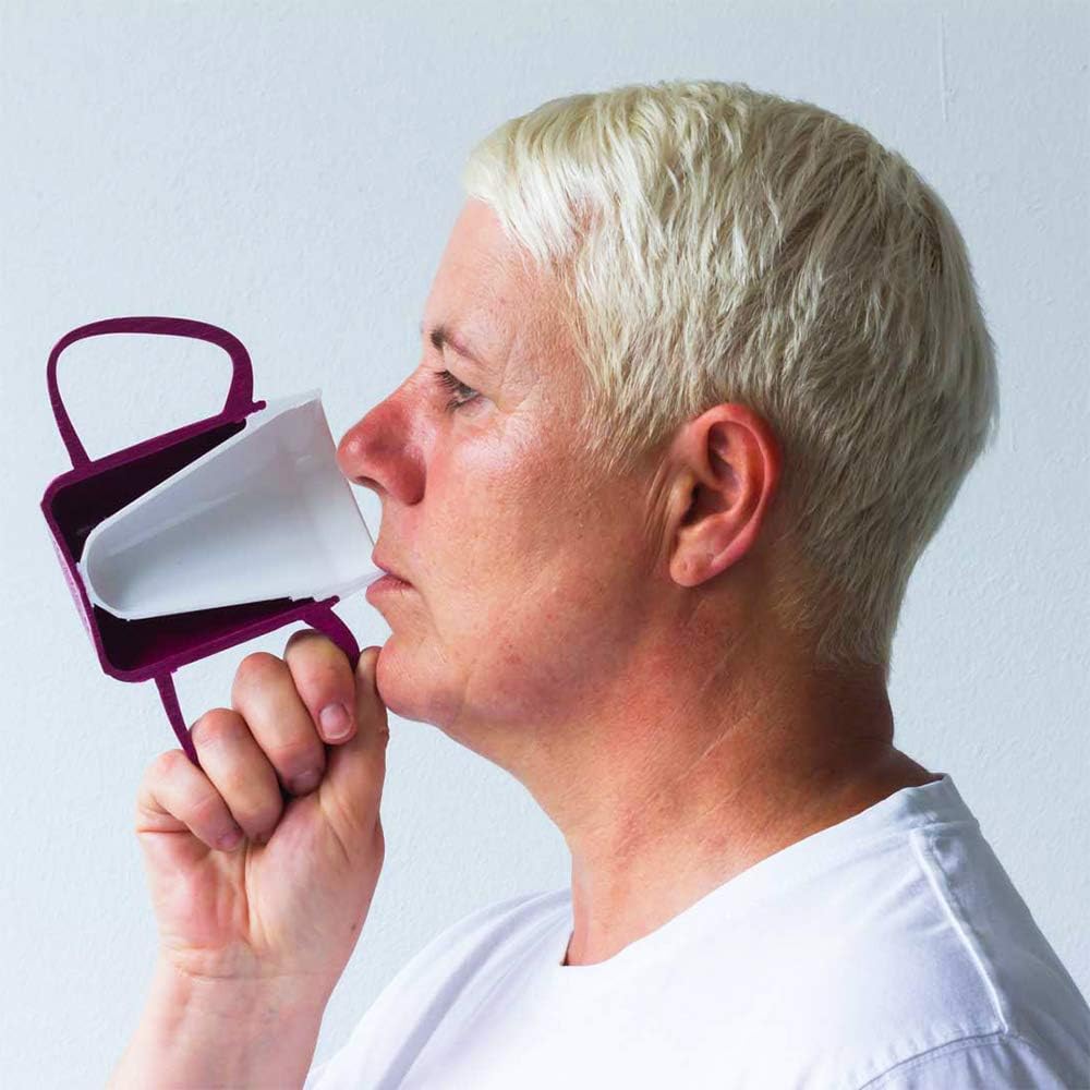 A special feature is hidden in the pretty design of the Two Handled Mug with Internal Cone: Its inside is conically shaped. With this feature the mug can be emptied comfortably, without leaning the head back. Also for physical limitations or in a lying position this mug can guarantee drinking enjoyment, which makes it a true everyday aid for seniors and people living with a disability.
