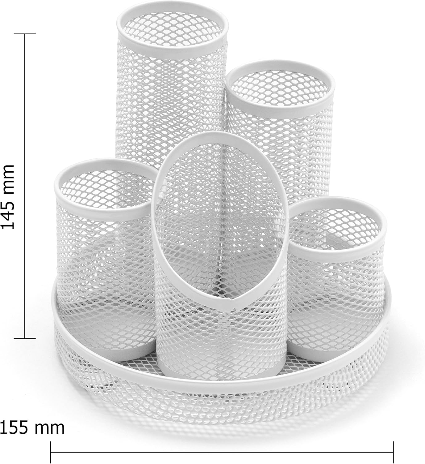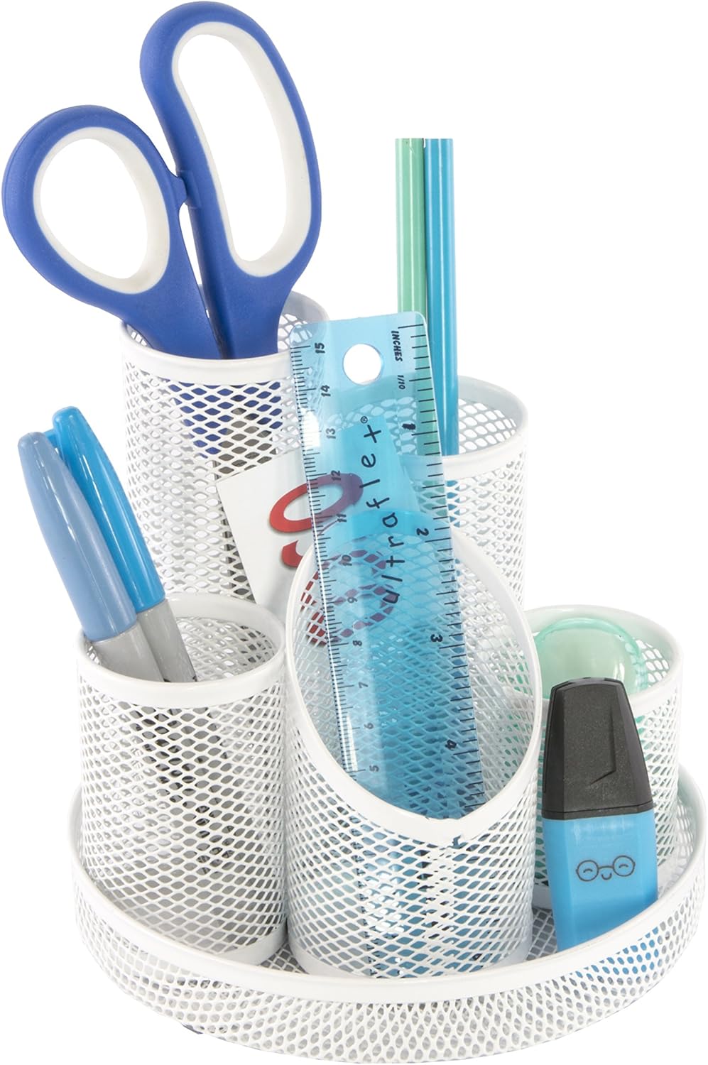 - An original OSCO design to keep your desk clutter free – elegant and practical white mesh desk tidy. Round tray with five tubes of different sizes for pens, scissors, highlighters etc. OSCO storage ranges are stocked by the UK’s leading retailers which include John Lewis, Rymans and WHSmiths, to name just a few.