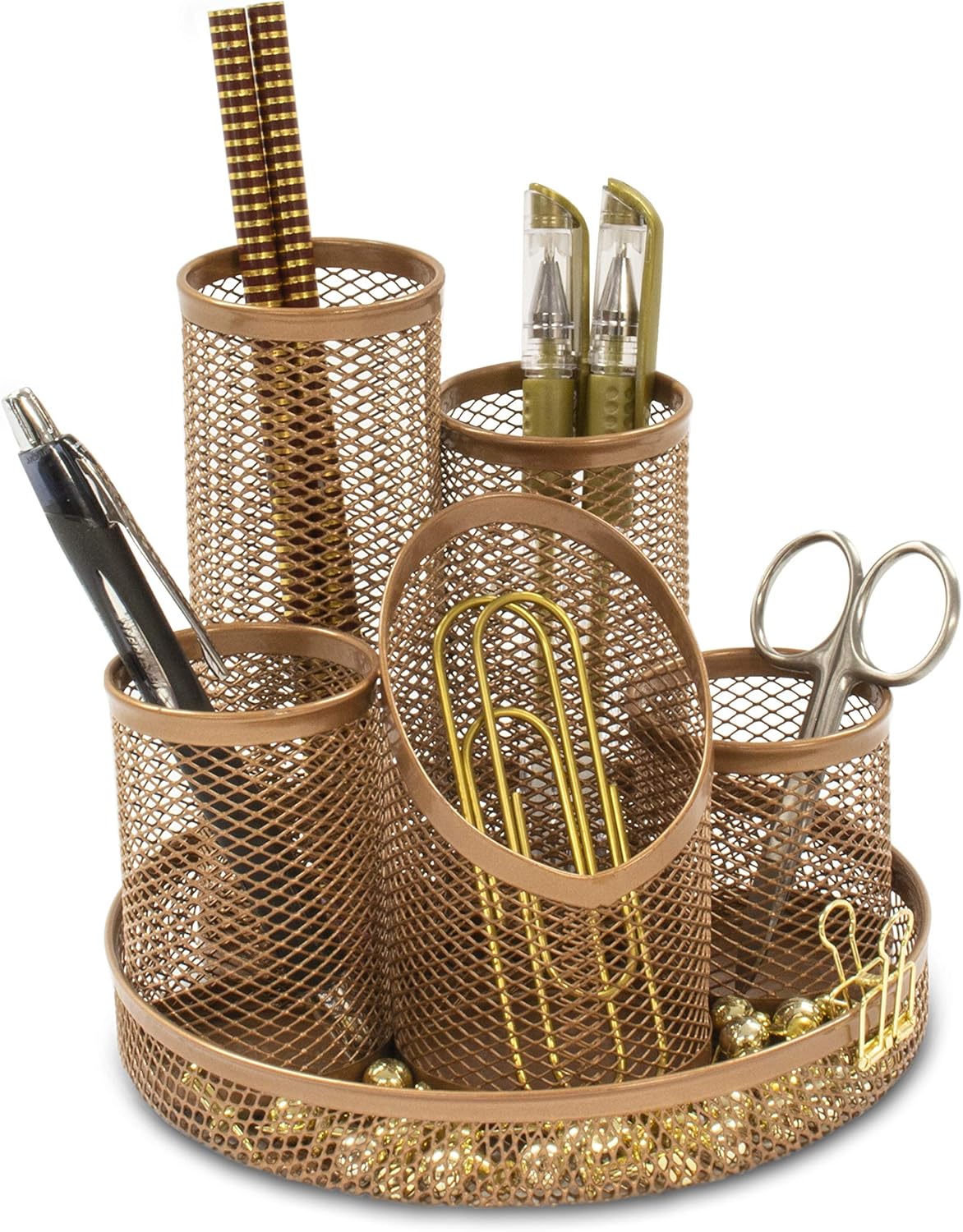 Osco DT5-RG Wire Mesh Letter 5 Tube Pen Pot – Dark Rose Gold