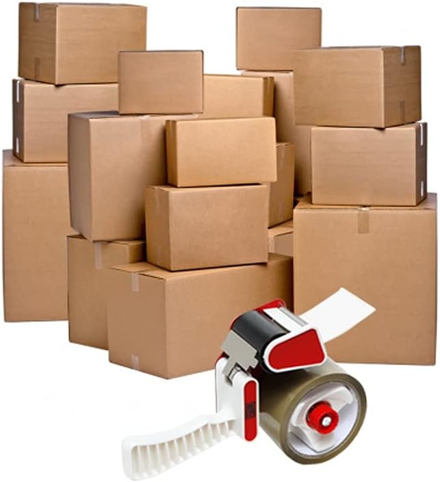 Packing Tape Dispenser Gun Tape Roll x 2 50M Parcel Tape 1 Clear & 1 Brown